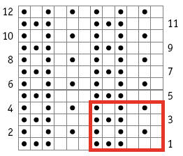 m. end. sur l'end. m. env. sur l'env. | Knit RS, Purl WS |