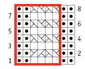 m. end. sur l'end. m. env. sur l'env. | Knit RS, Purl WS |