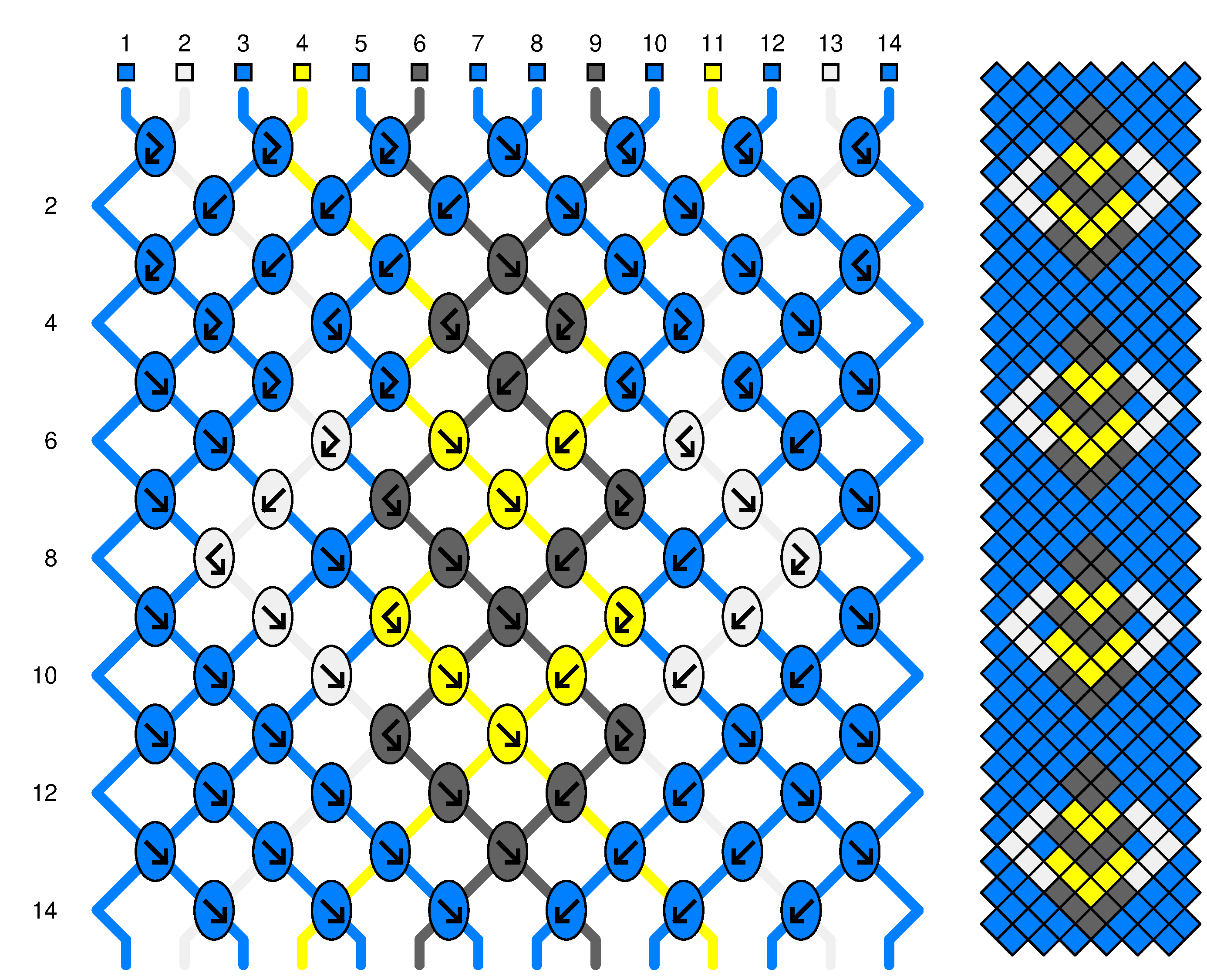 La couleur du rond indique la couleur du fils à nouer |
