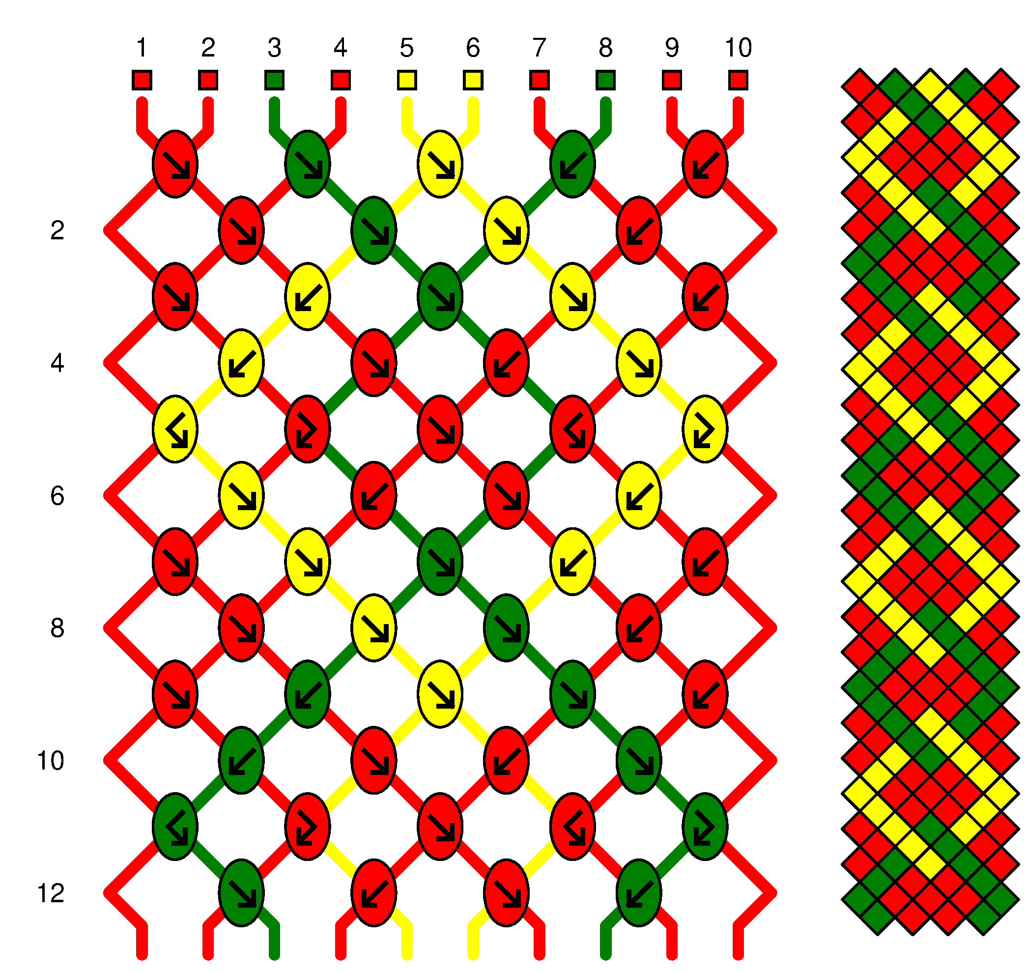 La couleur du rond indique la couleur du fils à nouer |