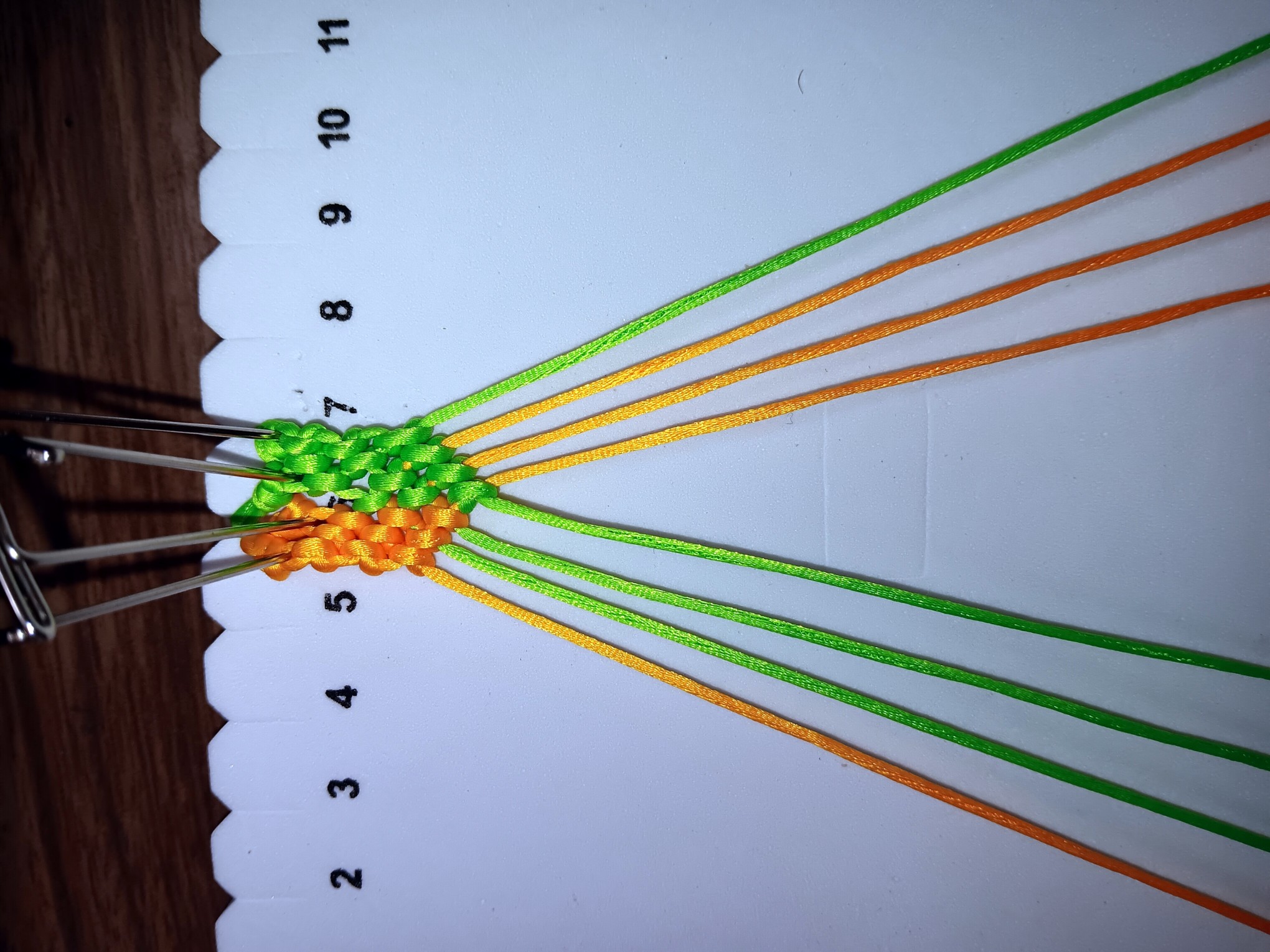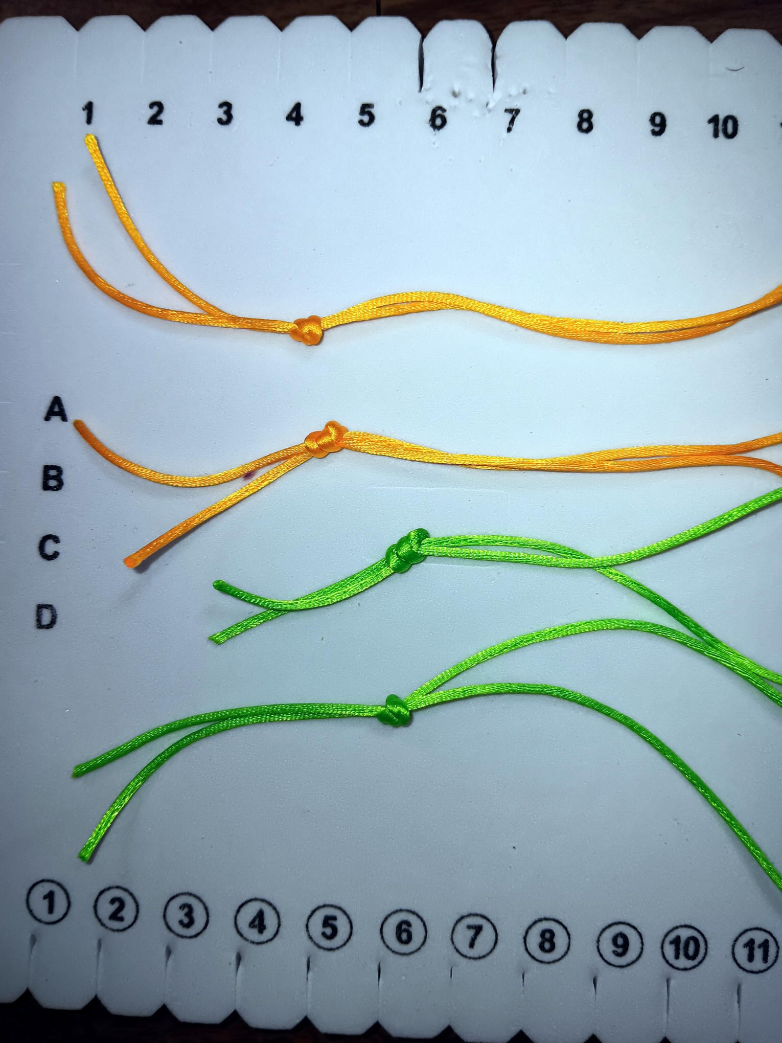 Toujours nouer le fil jaune avec les 4 fils suivants