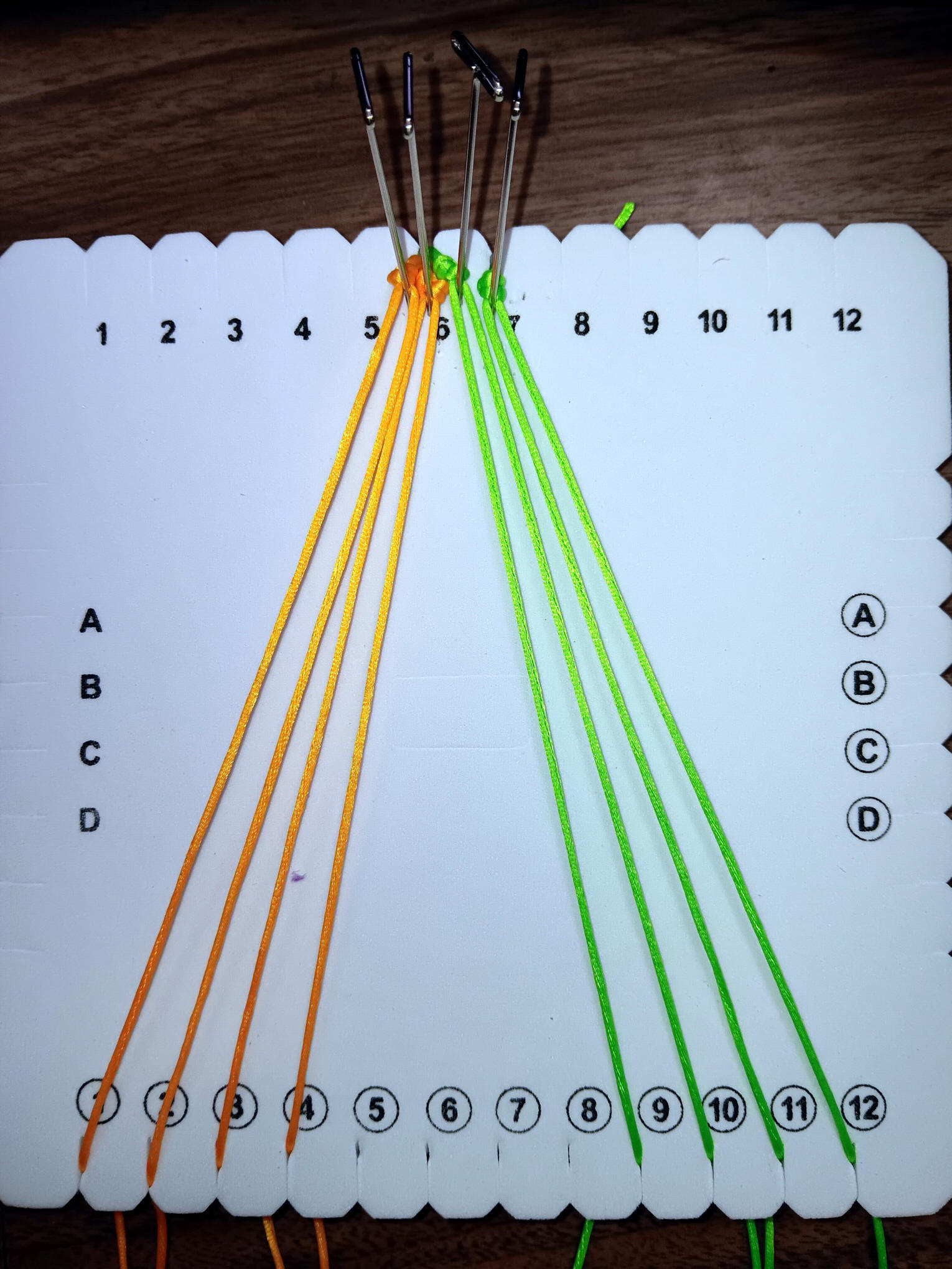 Placez les fils de façon symétrique soit 4 jaunes - 4 Verts