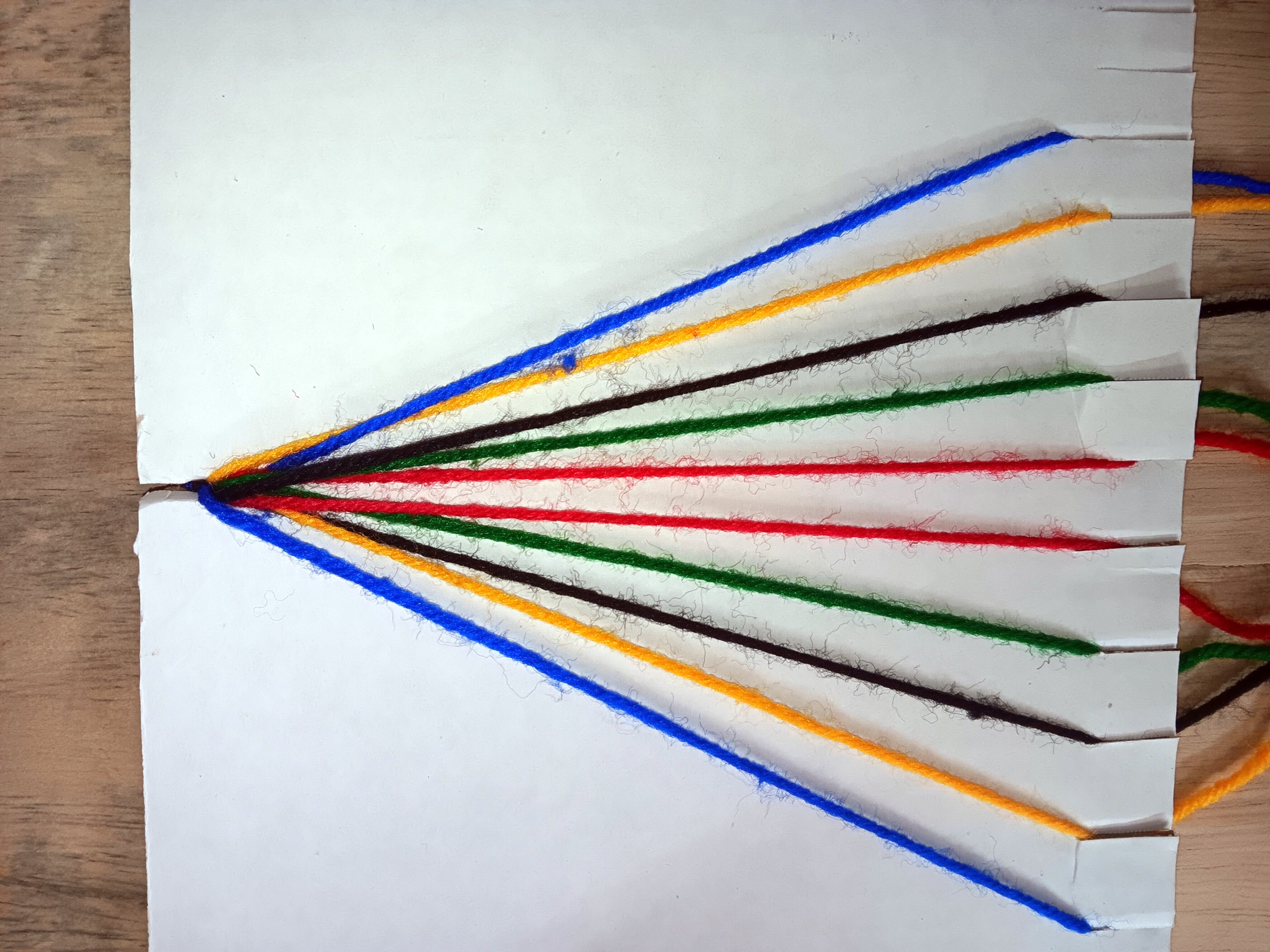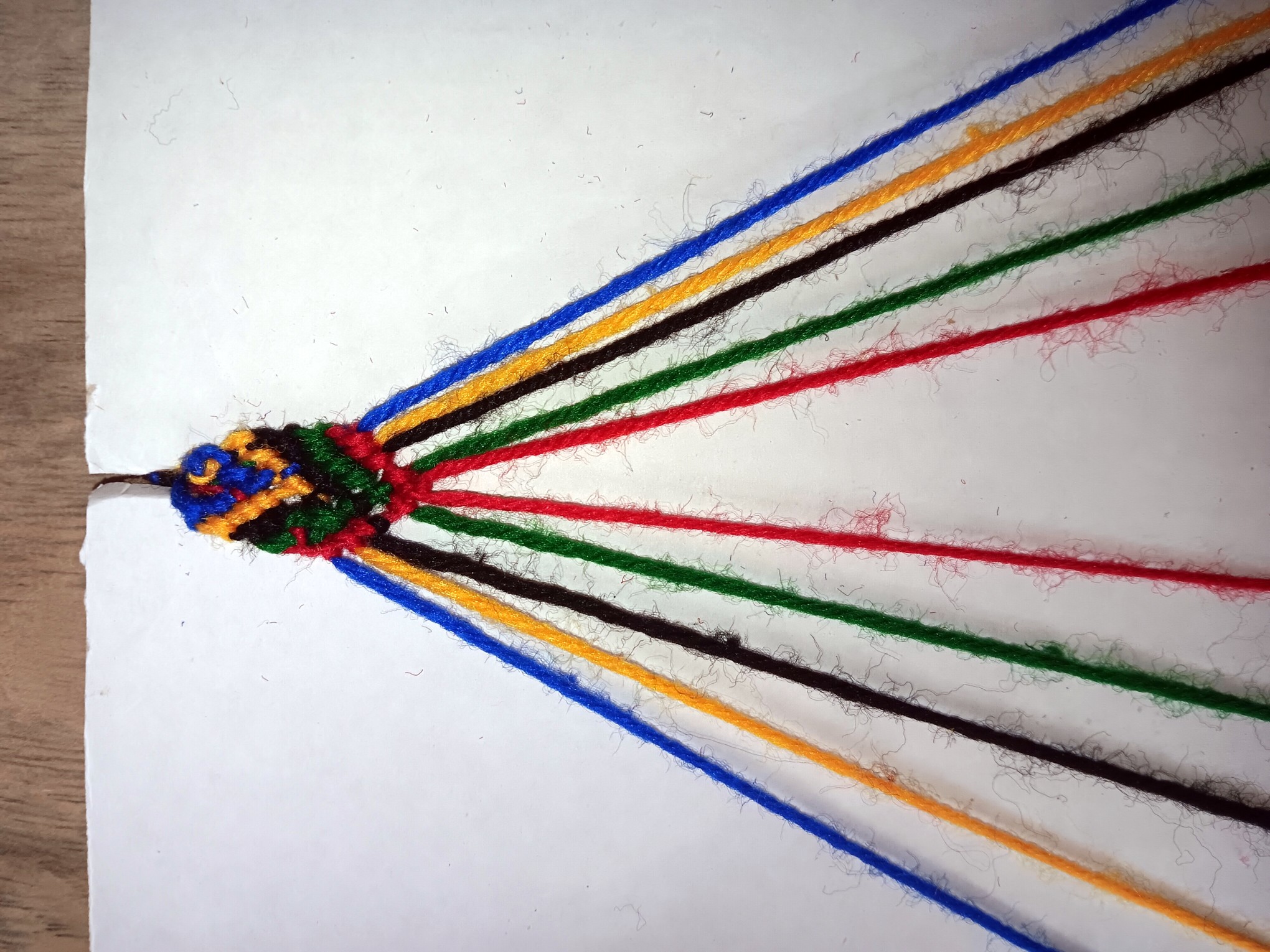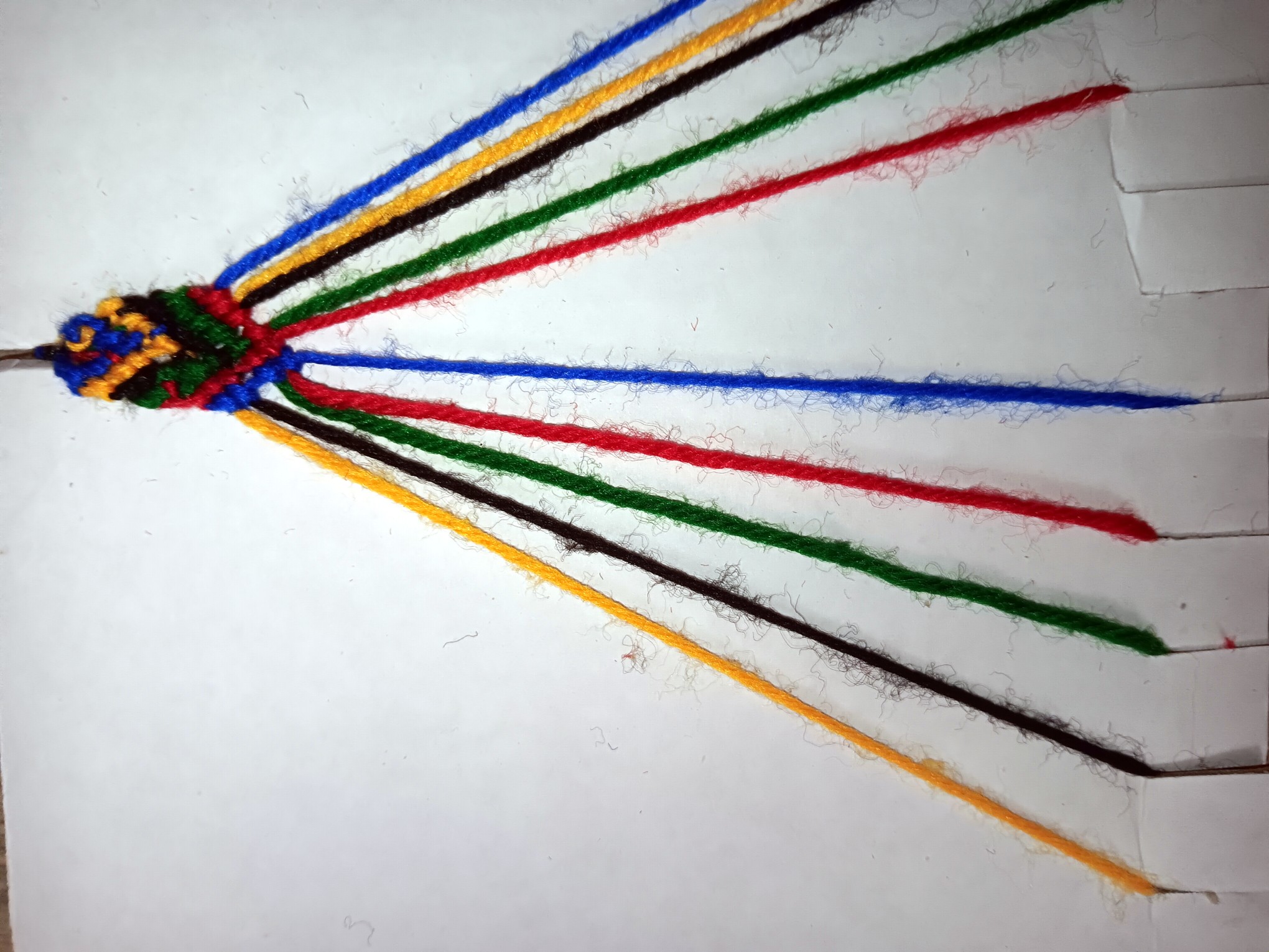 Coupez 10 fils (2 de chaque couleurs) de longueurs égales selon le Tableau