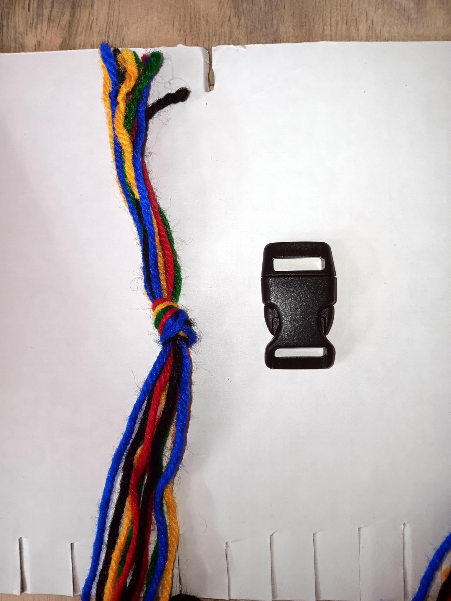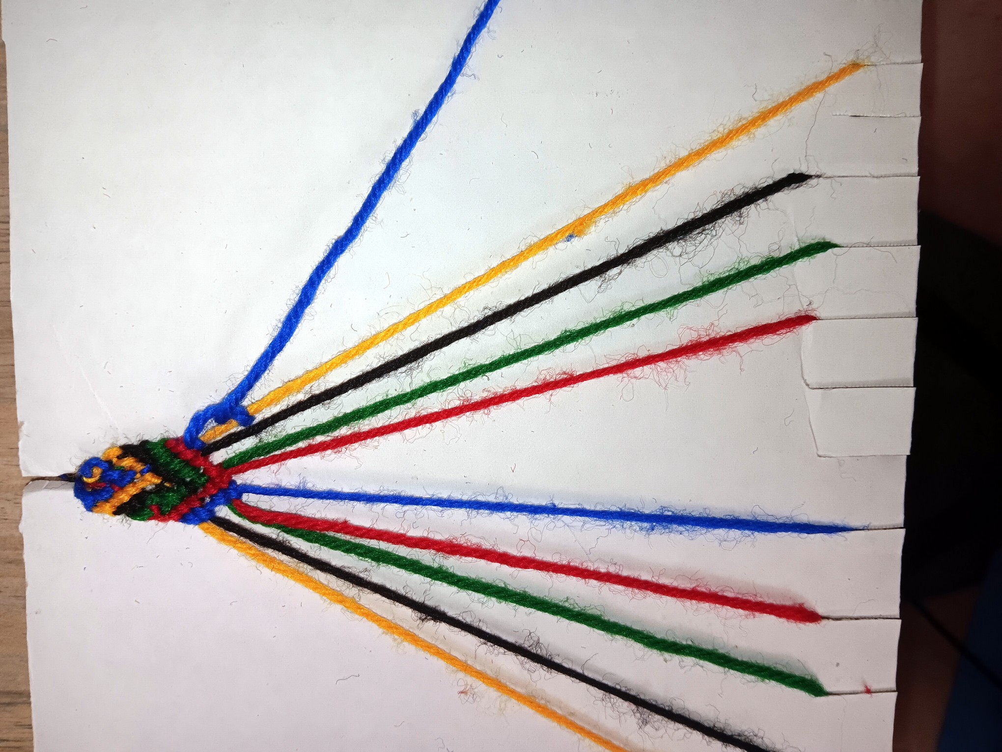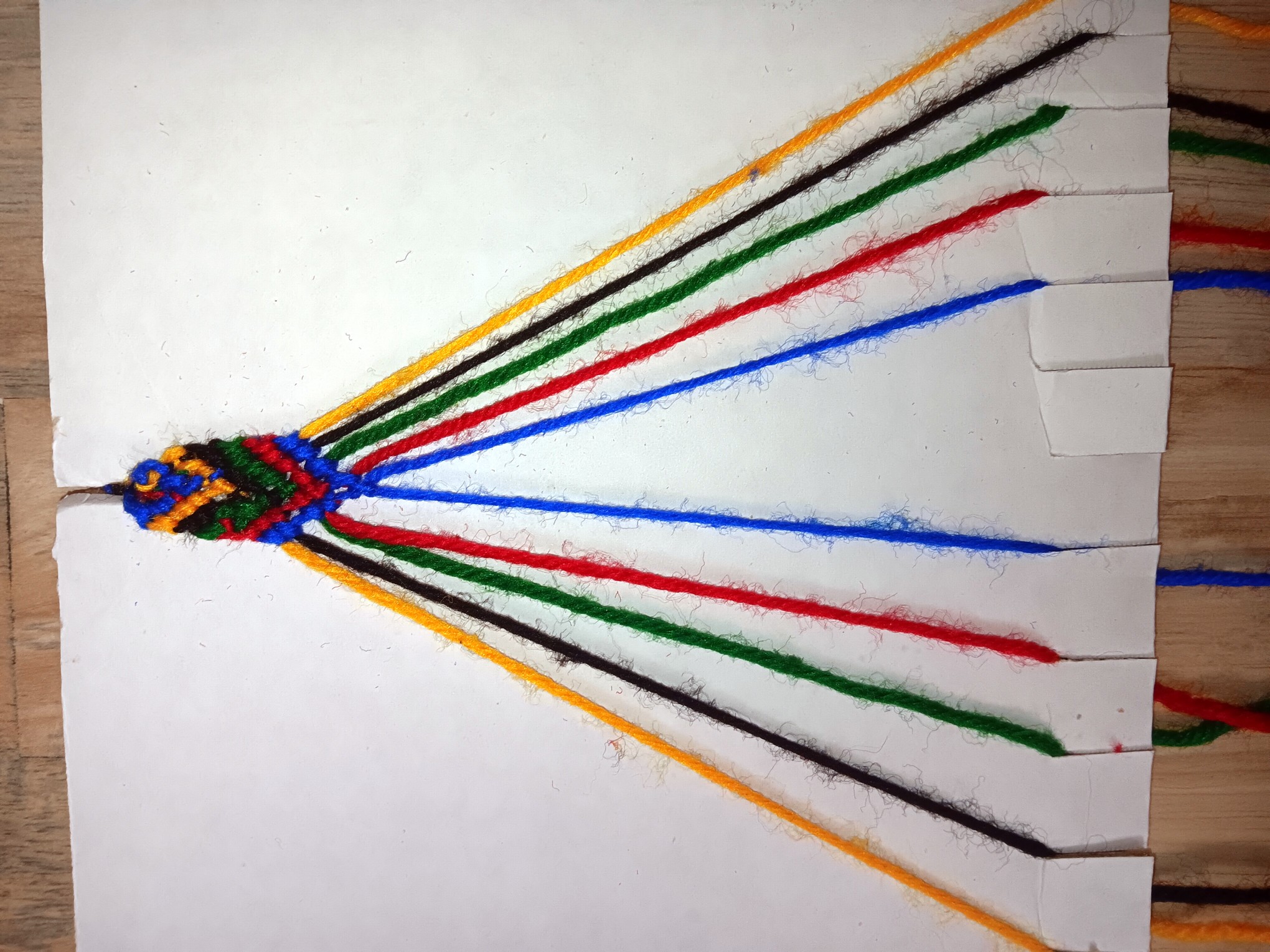 Coupez 10 fils (2 de chaque couleurs) de longueurs égales selon le Tableau