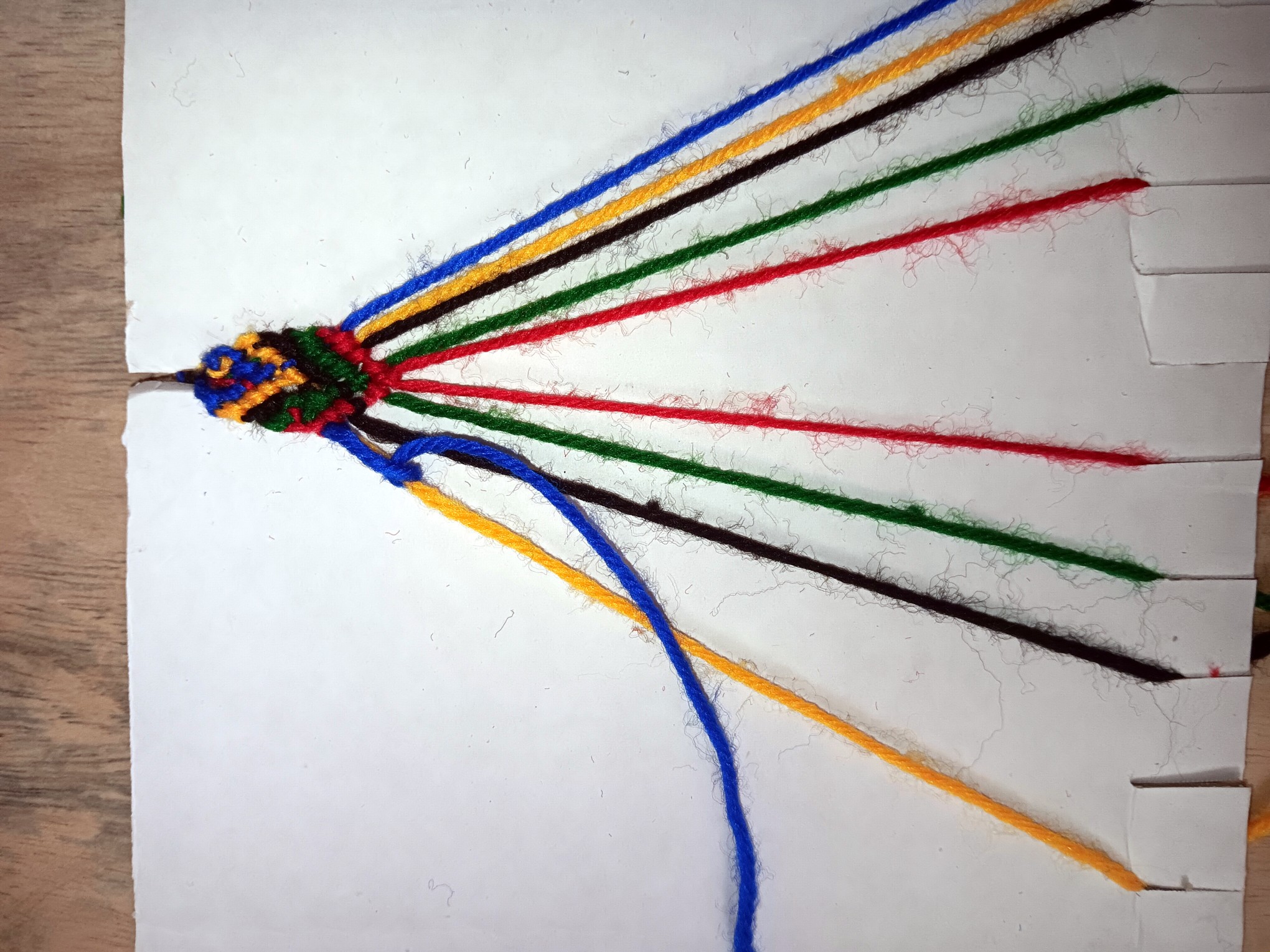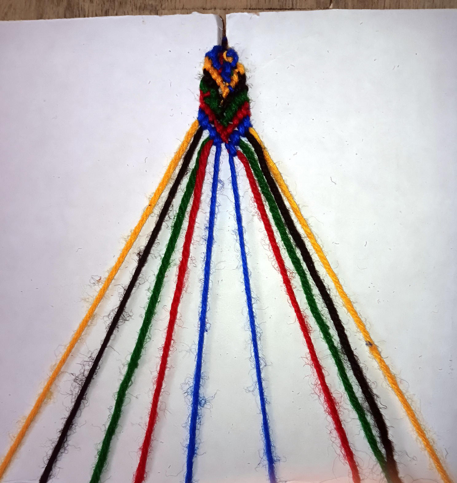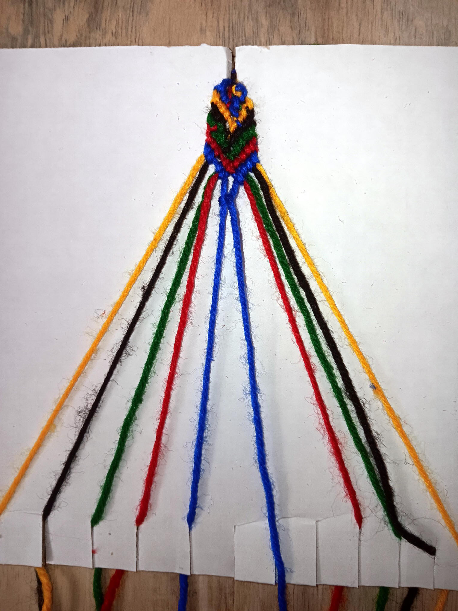 Pour chaque fil nouez 2 fois nouez le premier fil de droite avec les 3 fils