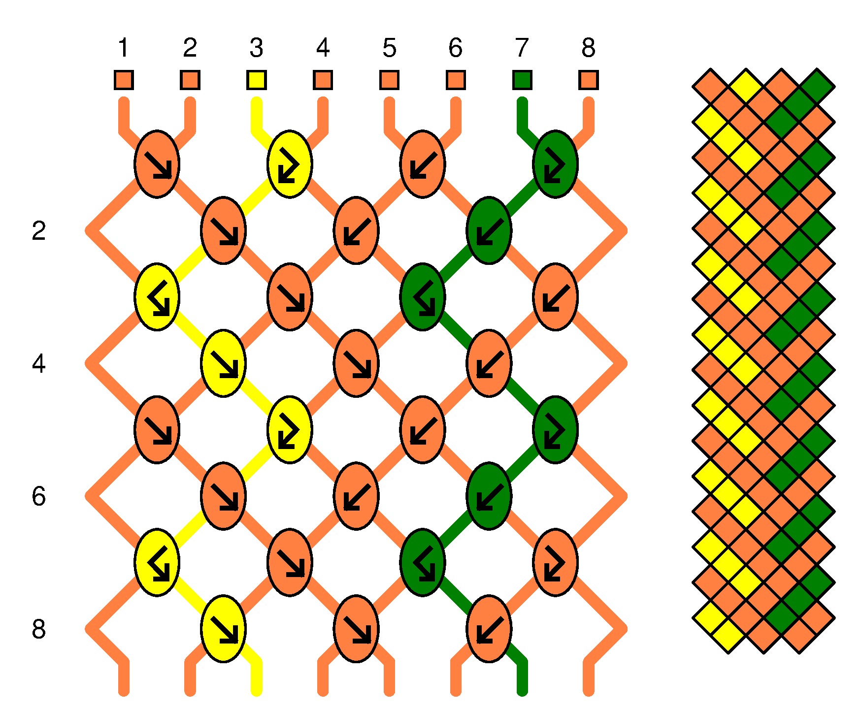 Les rangées paires - les fils à l’extérieur ne sont pas travaillés. | |