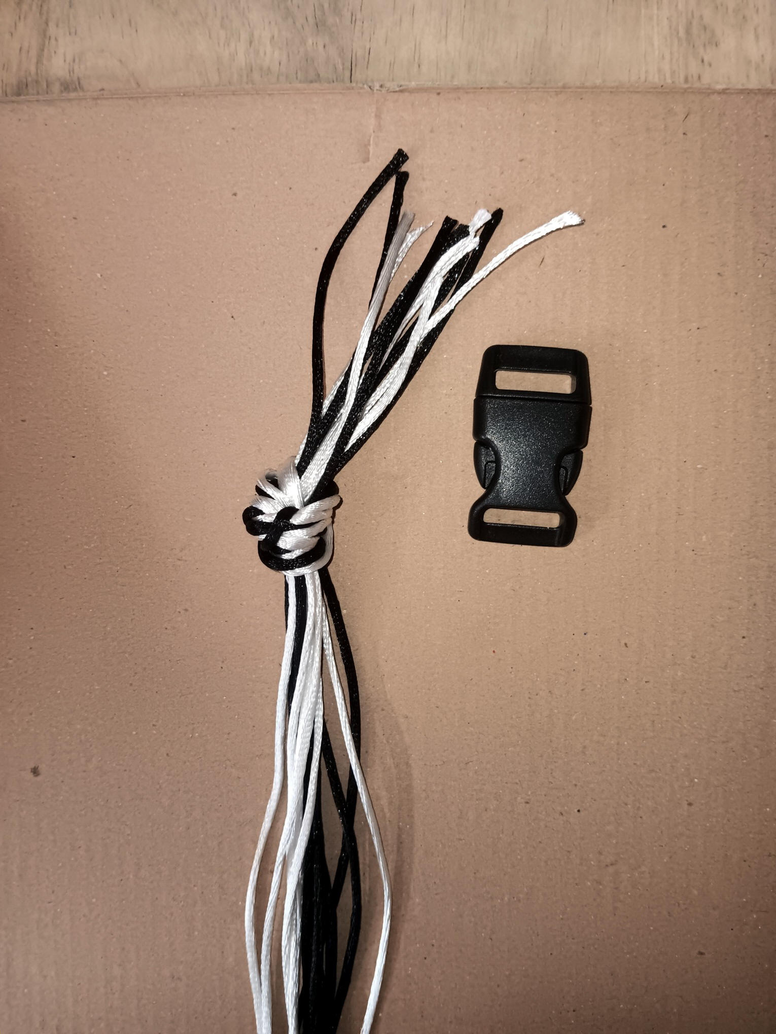 Pour ce modèle, j'ai utilisé des fils de nylon satinés de 2 mm. Ce qui donne un bracelet de 35 mm (3.5 cm) de large.