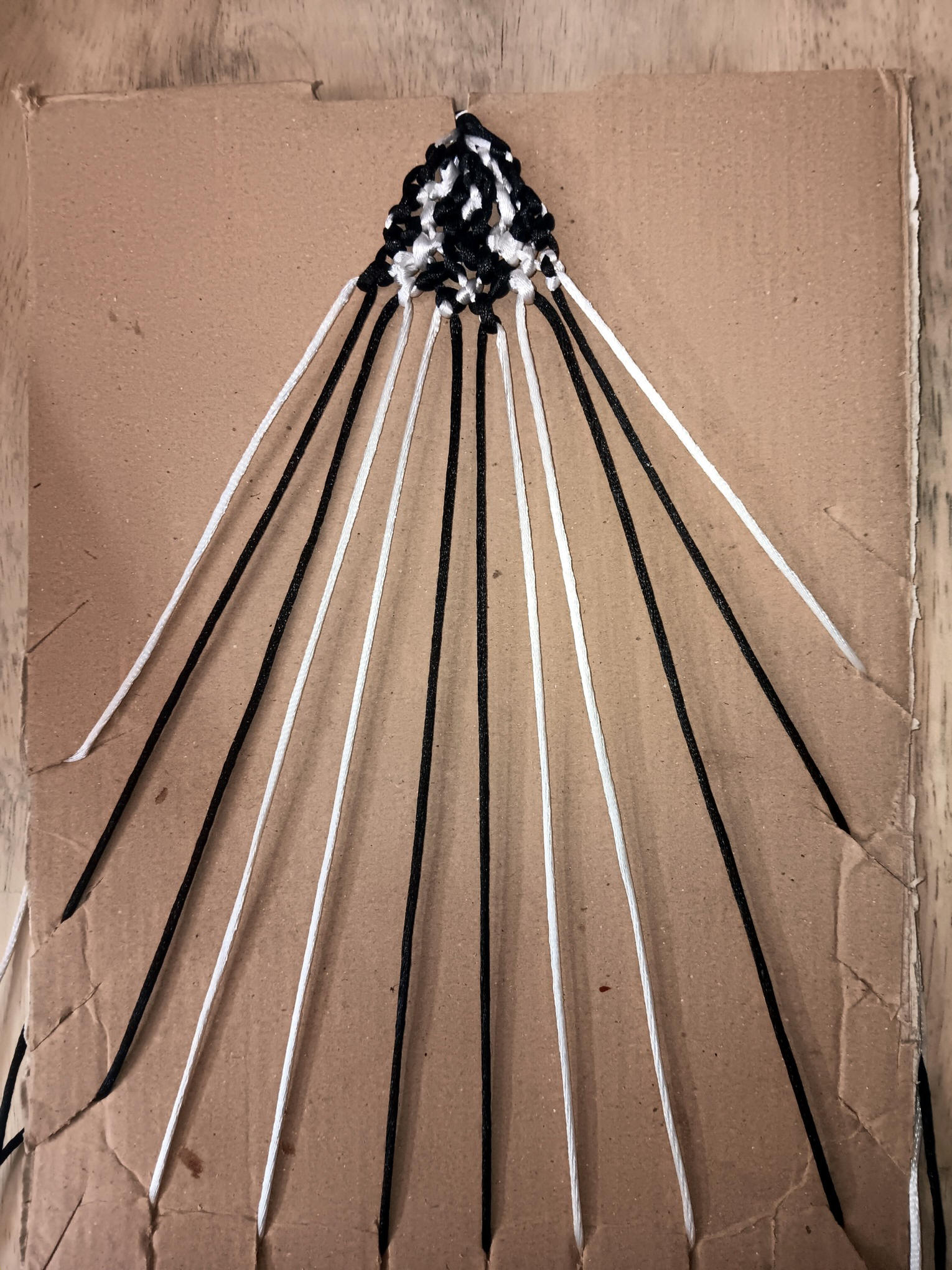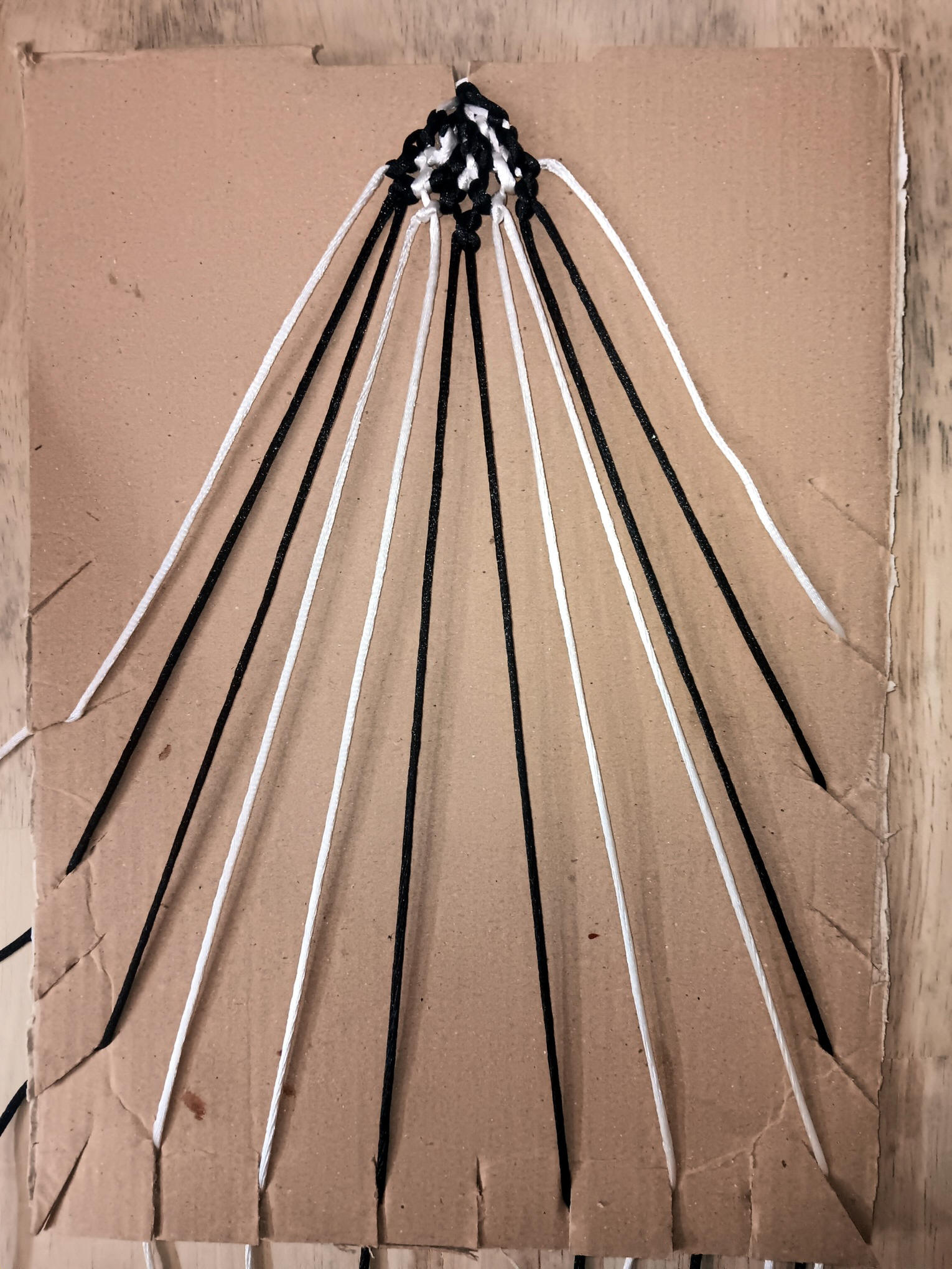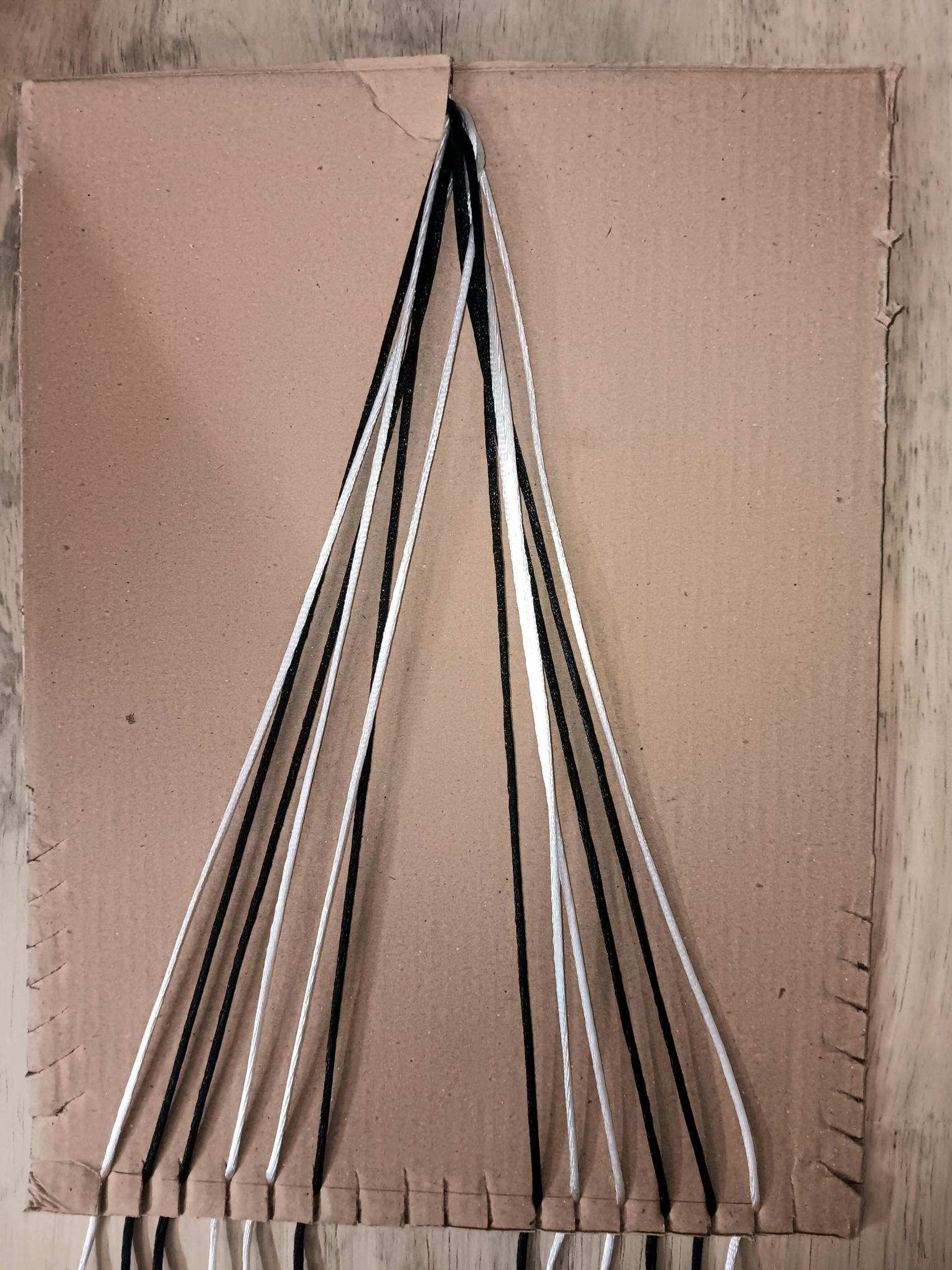 Coupez 8 fils (4 de chaque couleurs) de longueurs égales selon le Tableau
