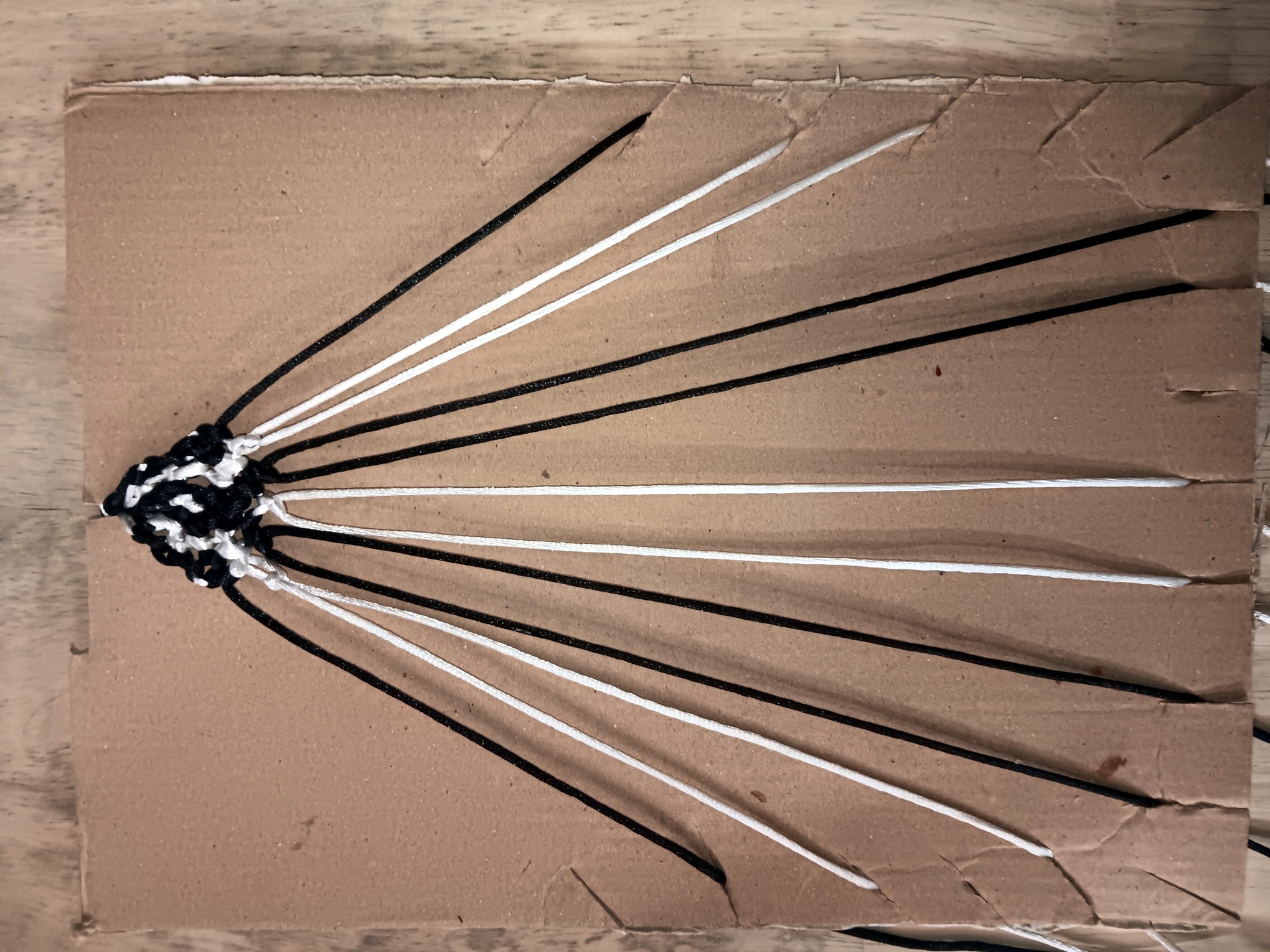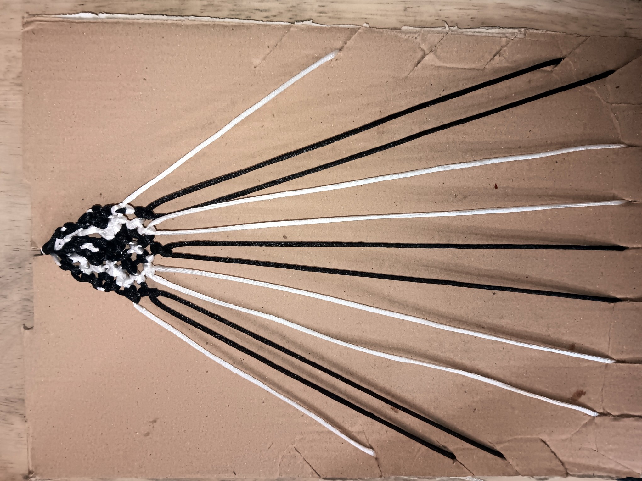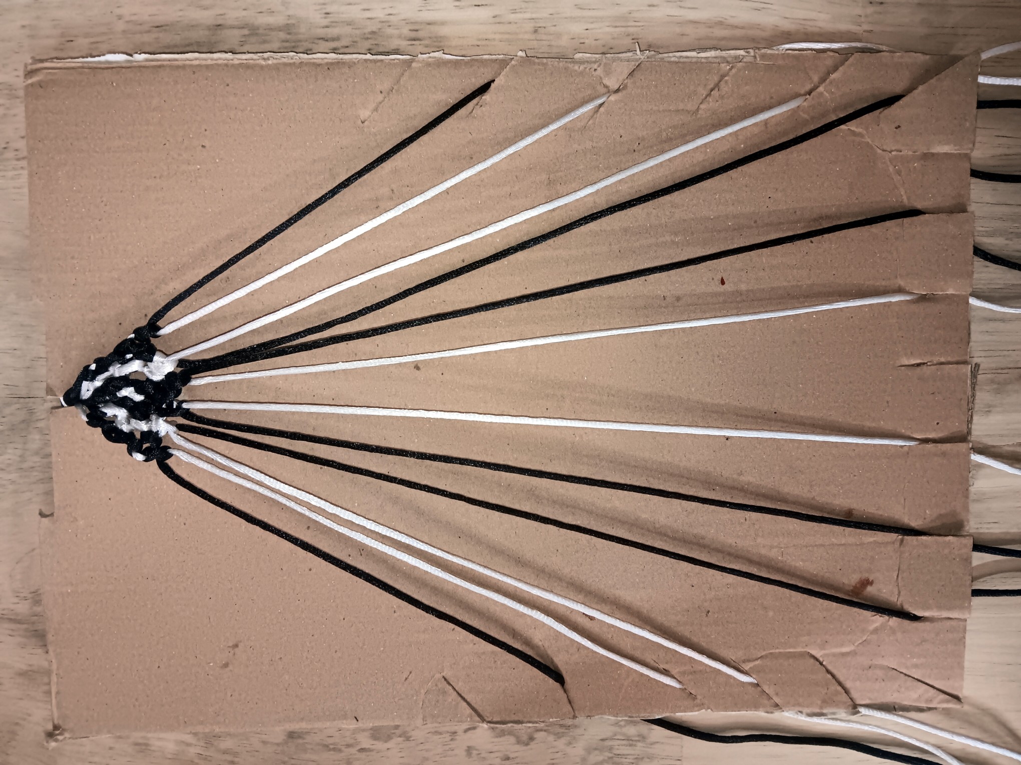 Coupez 8 fils (4 de chaque couleurs) de longueurs égales selon le Tableau