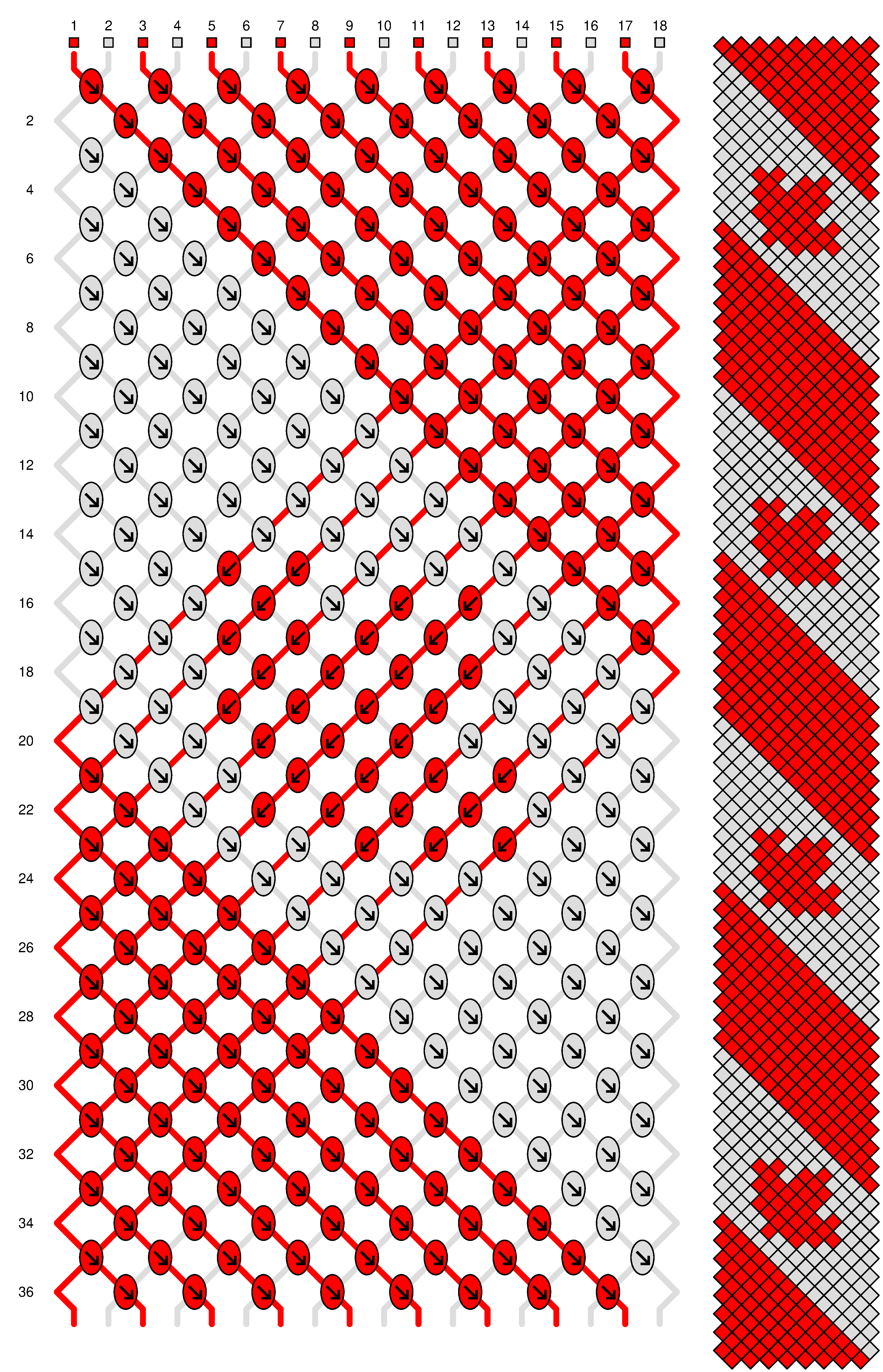 Les rangées paires - les fils à l’extérieur ne sont pas travaillés. | |