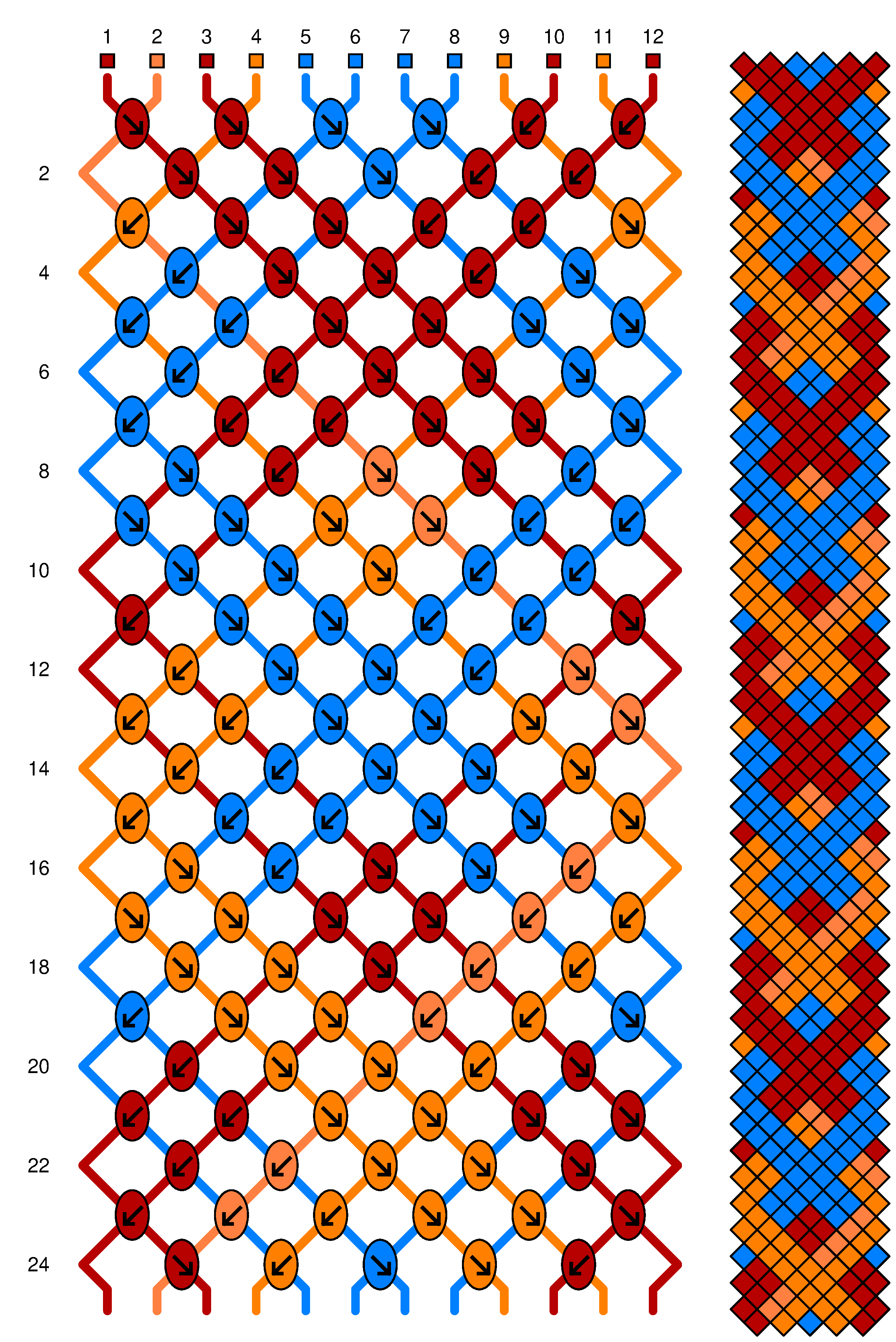 Les rangées paires - les fils à l’extérieur ne sont pas travaillés. | |