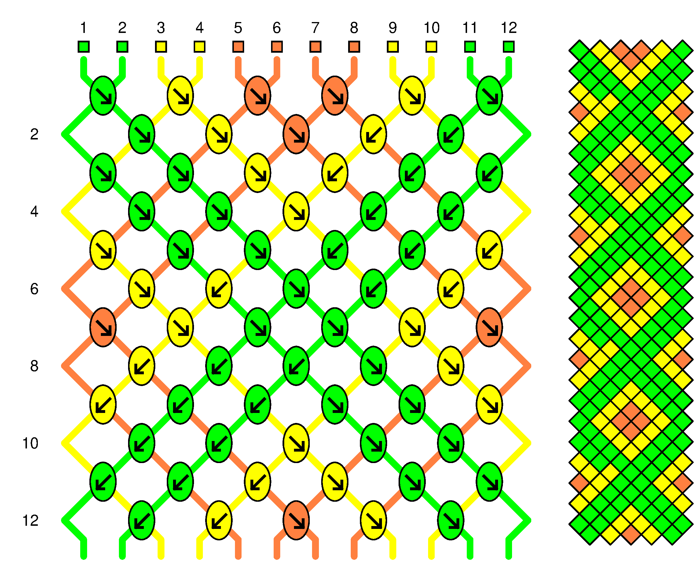 Les rangées paires - les fils à l’extérieur ne sont pas travaillés. | |