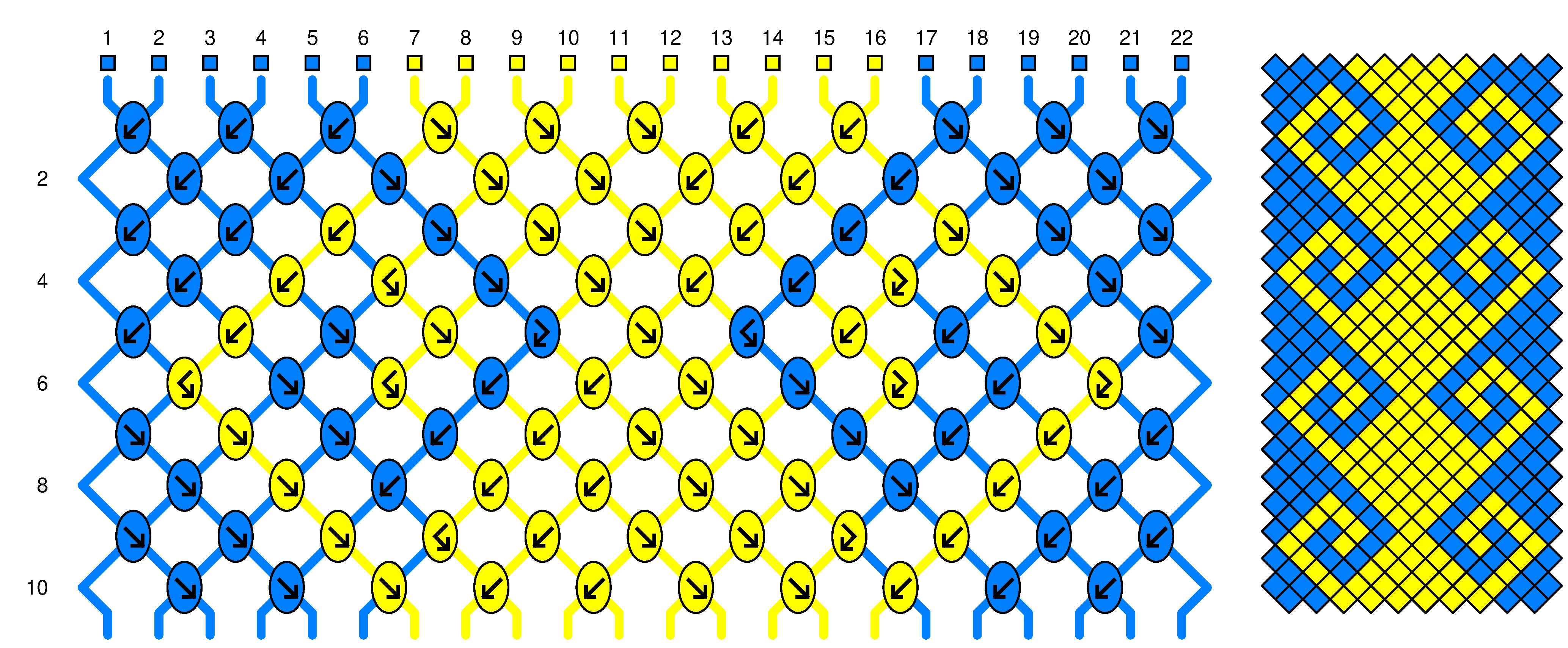 Coupez 22 fils (12 bleu, 10 jaune) de longueurs égales