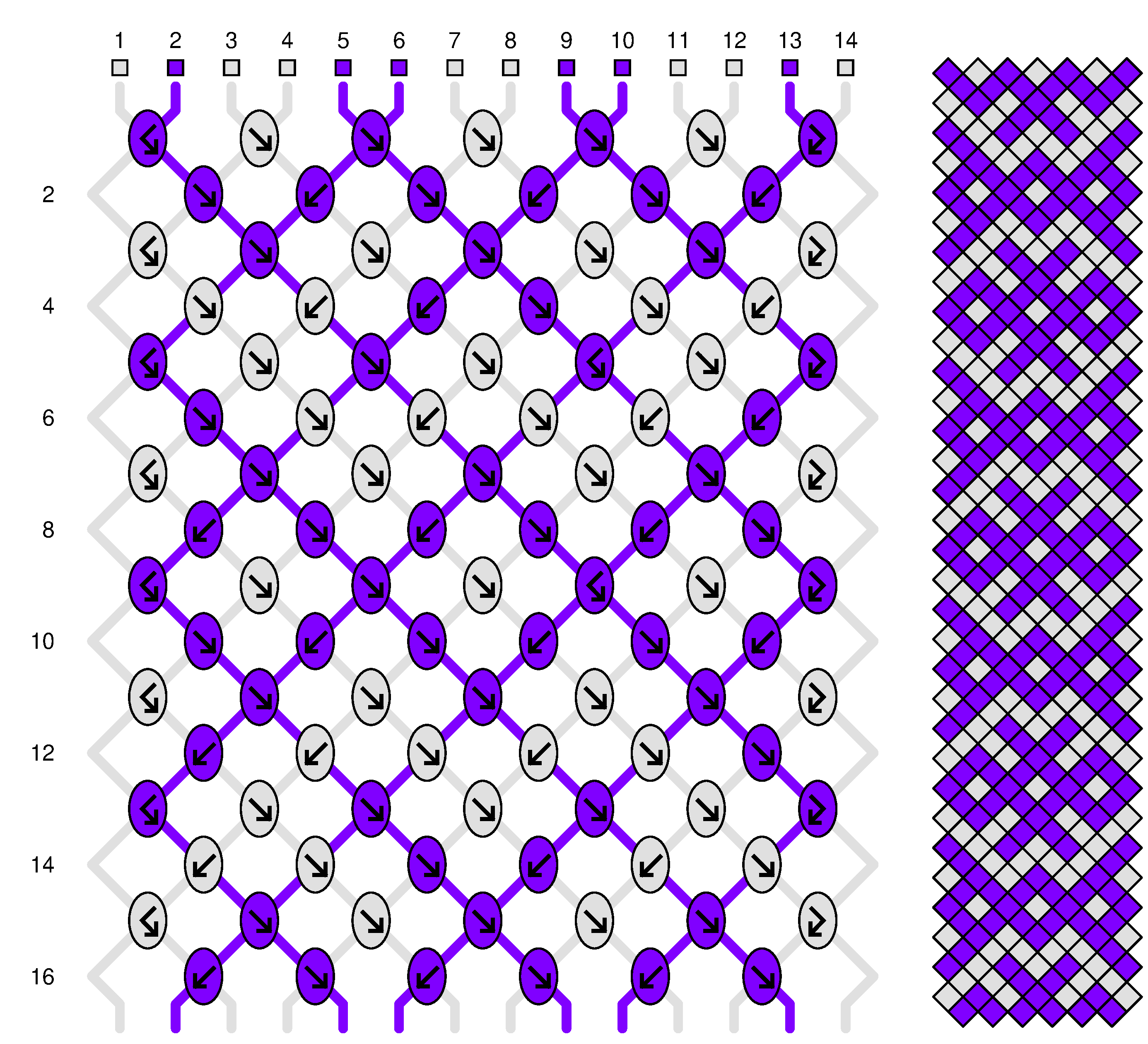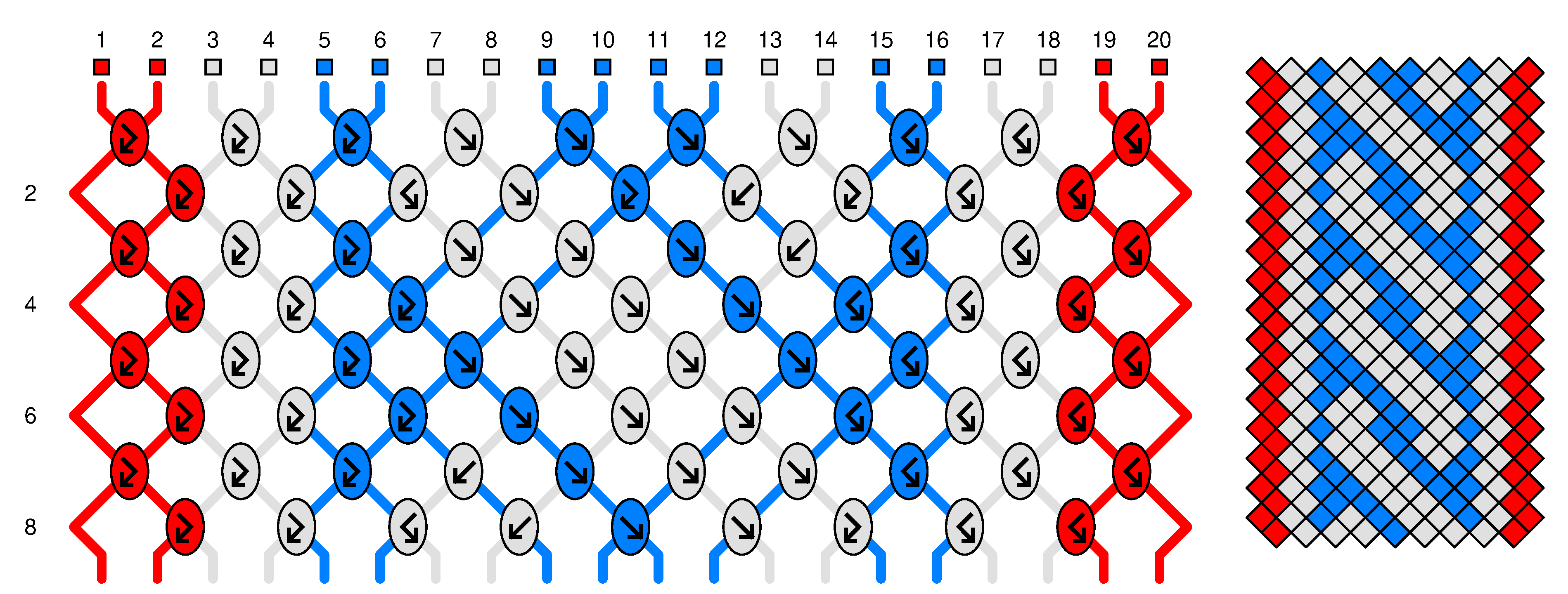 Les rangées paires - les fils à l’extérieur ne sont pas travaillés. | |