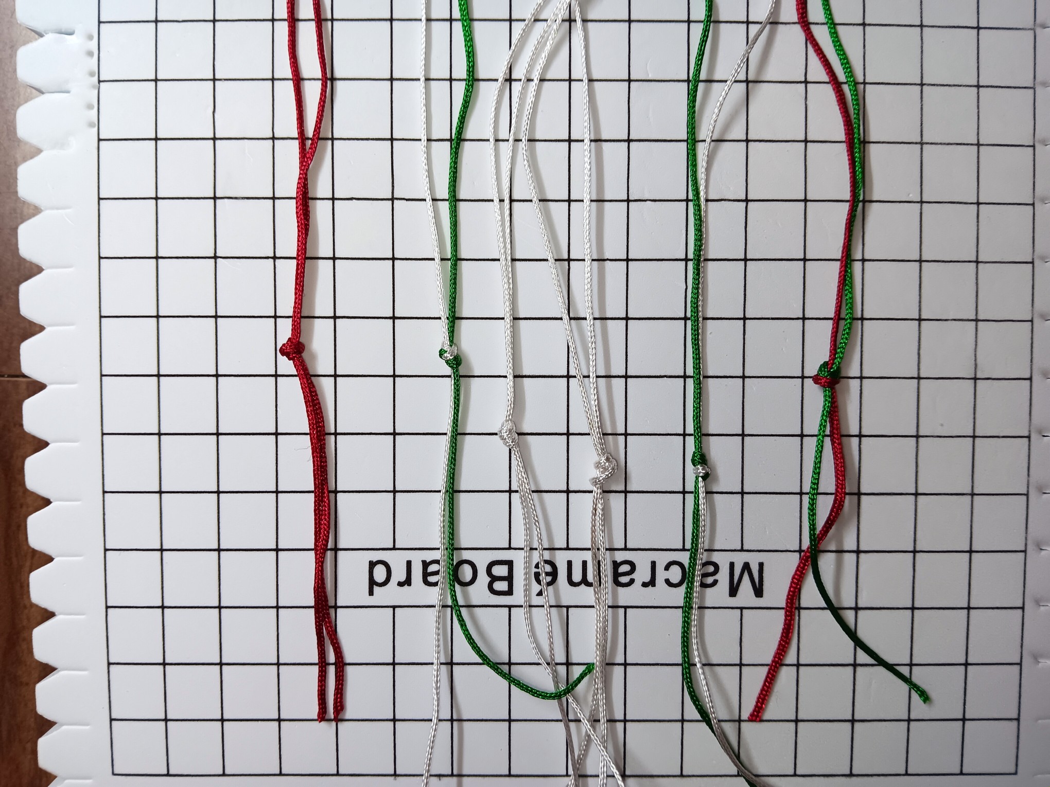 Noeud Droit + Noeud Gauche Avec le fil gauche, faite un Noeud Droit 1 fois et un Noeud Gauche 1 fois en gardant les fils dans la même position. |