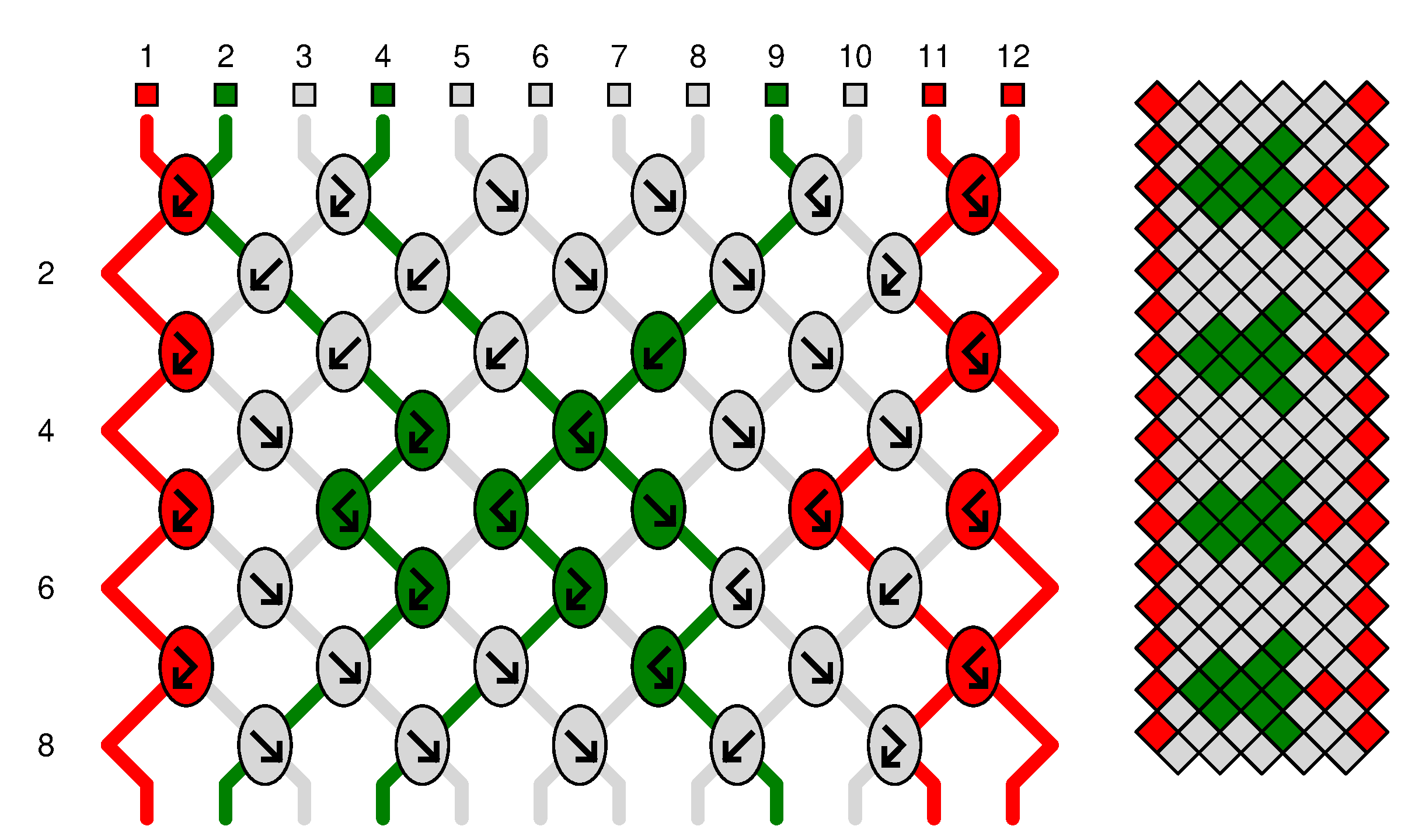 Les rangées paires - les fils à l’extérieur ne sont pas travaillés. | |