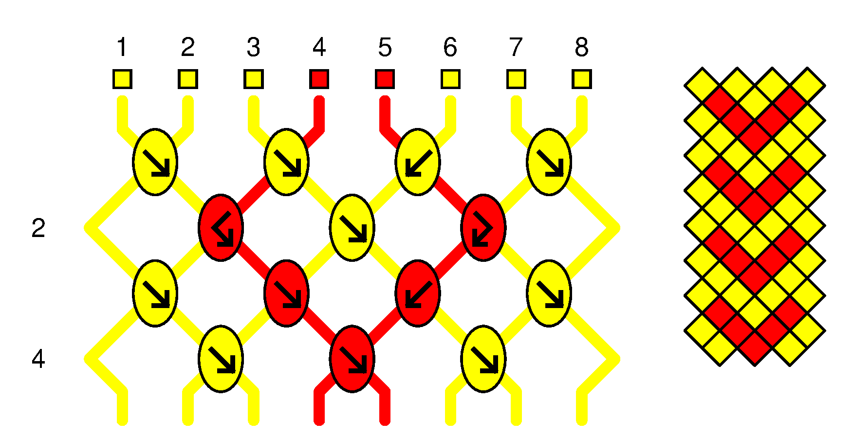 Les rangées paires - les fils à l’extérieur ne sont pas travaillés. | |