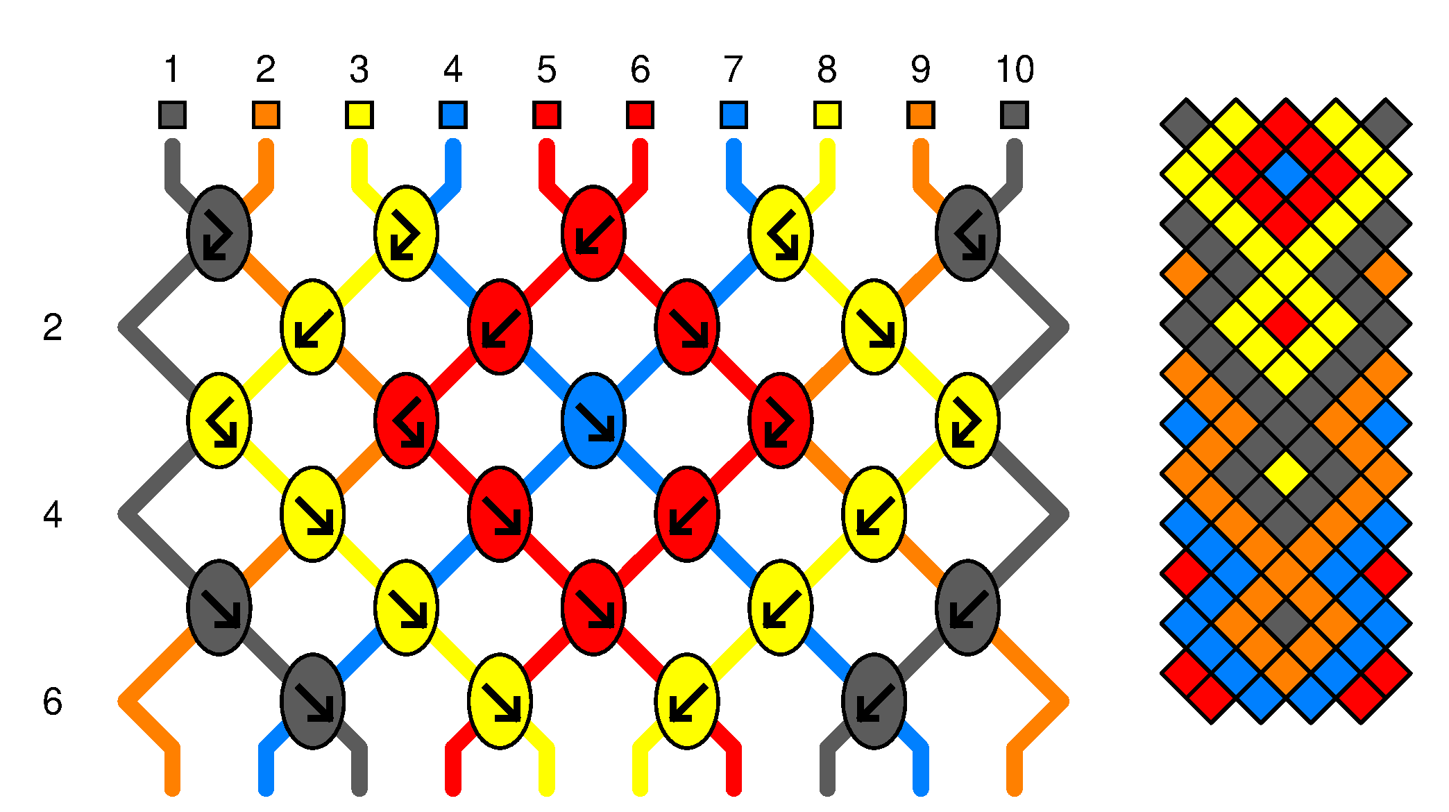 La couleur du rond indique la couleur du fils à nouer |