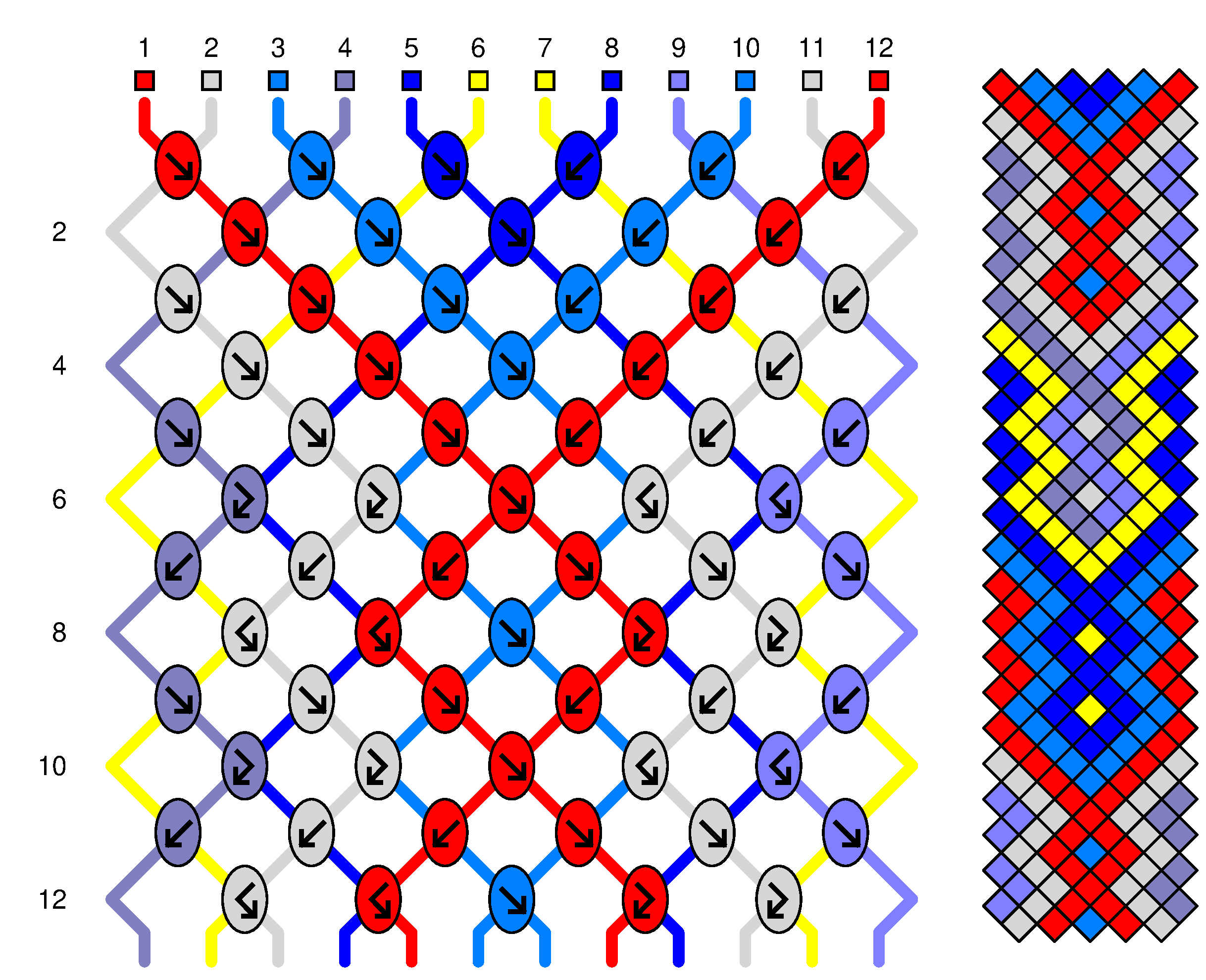 La couleur du rond indique la couleur du fils à nouer |