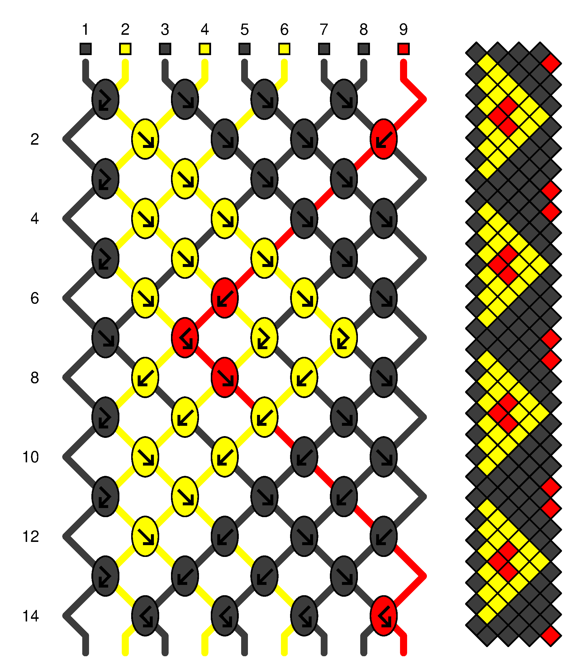 Les rangées paires - les fils à l’extérieur ne sont pas travaillés. | |