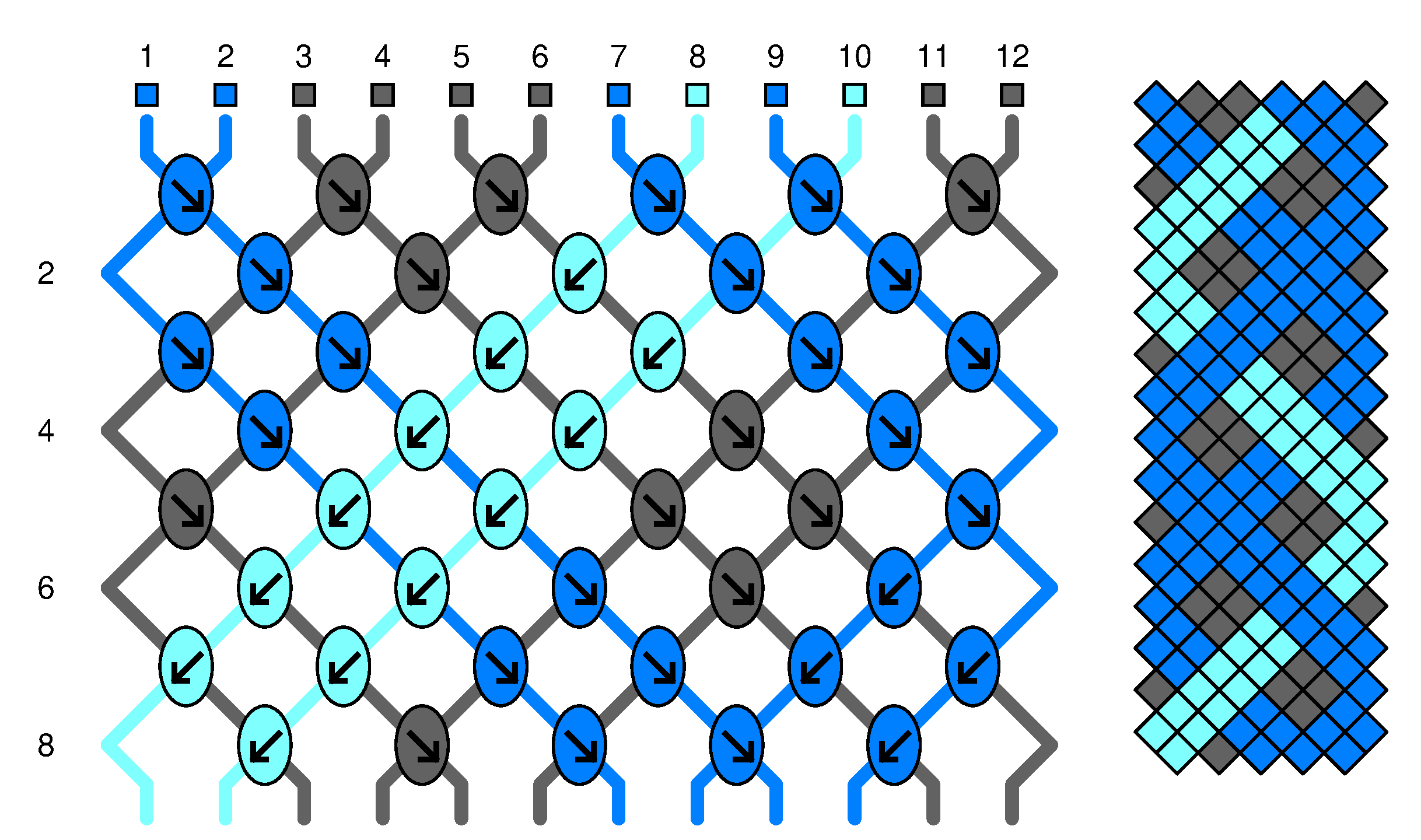 Les rangées paires - les fils à l’extérieur ne sont pas travaillés. | |