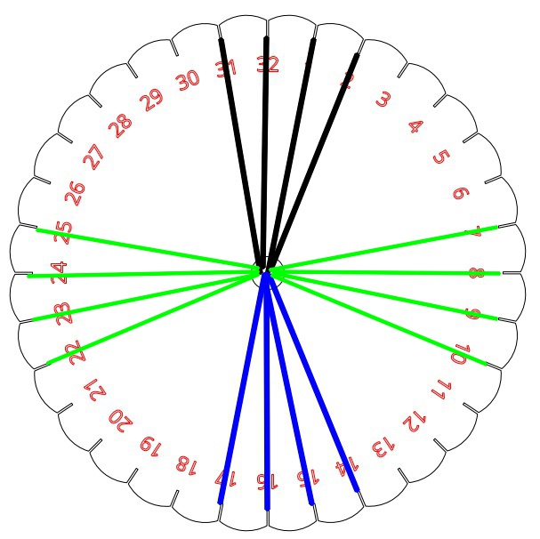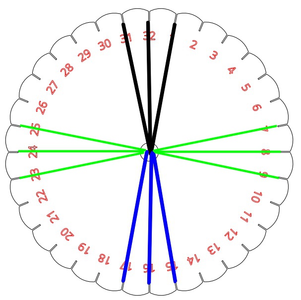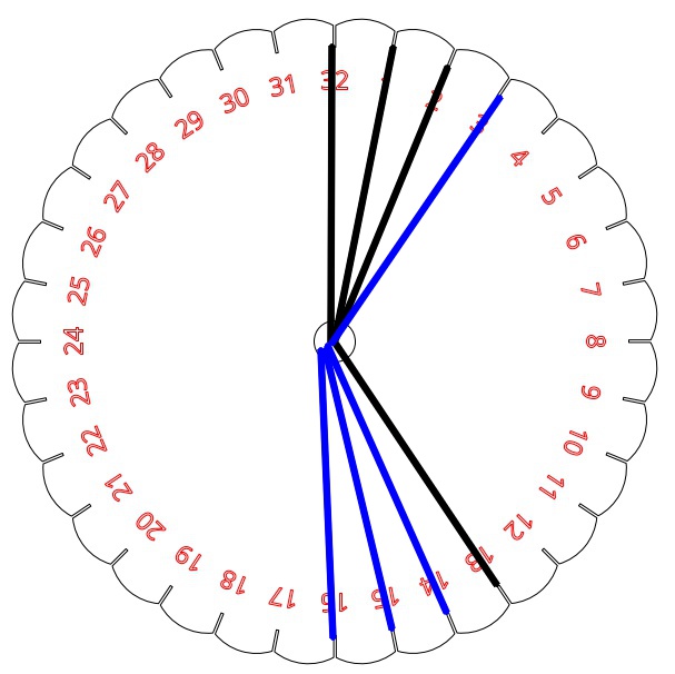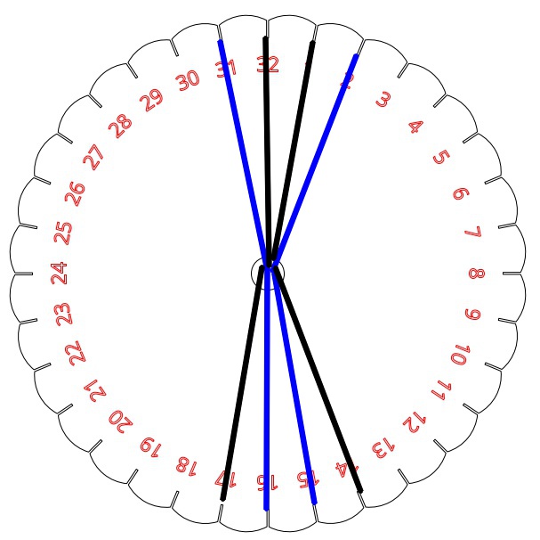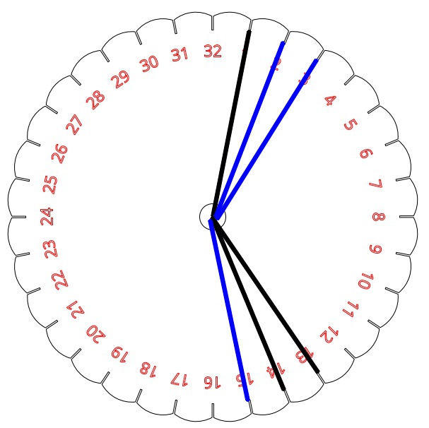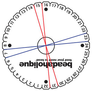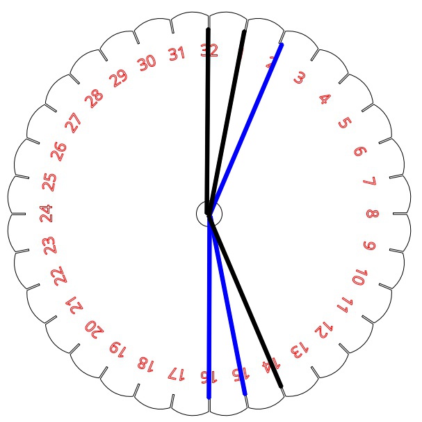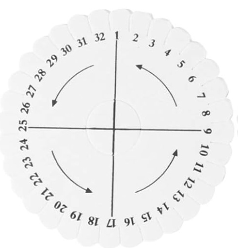 Faites pivoter le disque dans le sens inverse des aiguilles d'une montre d'un quart de tour (90 degrés), de sorte que le point 8 soit en haut et le point 24 en bas (Illustration 3).