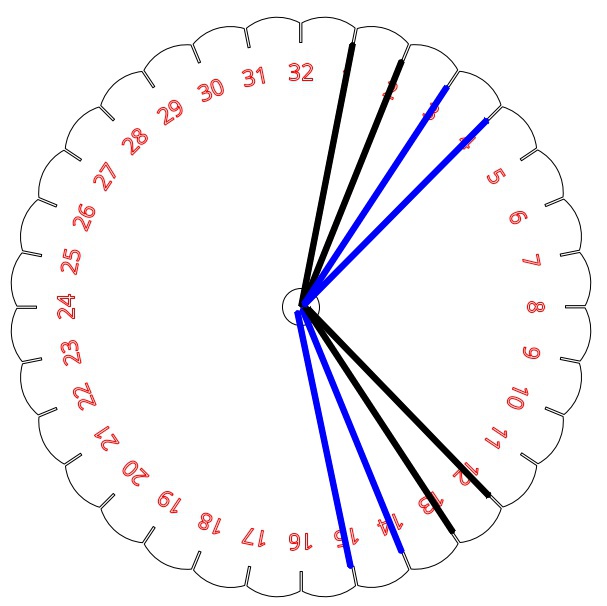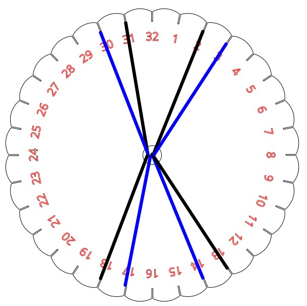 Lors du travail, on peut utilisé les lignes sur le disque pour aligner les pairs de fils lorsque qu'une pair de fils arrive à cette endroit.