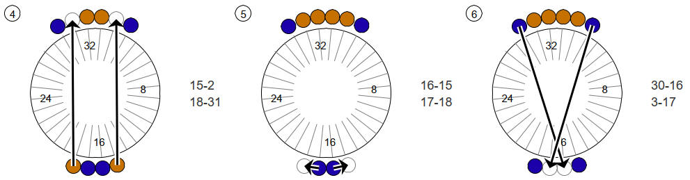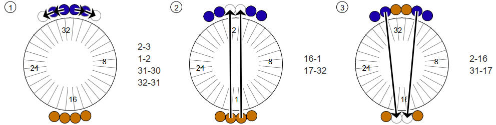 Step 2 Remove string #8 and place it at #16. Remove string #9 and place it at #1. Remove string #24 and place it at #32. Remove string #23 and place it at #17. |