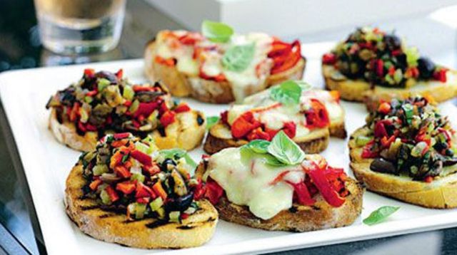 Déposer un peu du mélange sur les tranches de pain et garnir de feta ou de mozzarella