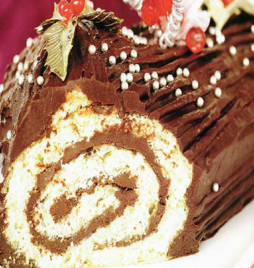 Couvrir le roulé avec la crème au chocolat restante et laisser sécher pendant 5 mn, tracer des lignes avec les pointes d'une fourchette pour lui donner l'aspect d'une bûche et réserver au frais.