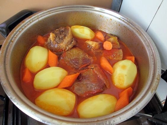 Ajoutez les pommes de terre et les carottes, couvrez d'eau et faîtes cuire jusqu'à ce que les légumes soient cuits.