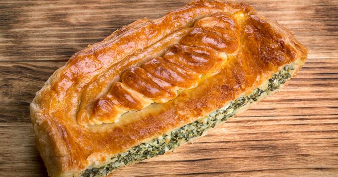 Étaler la pâte au rouleau en une bande d’une quinzaine de cm de largeur