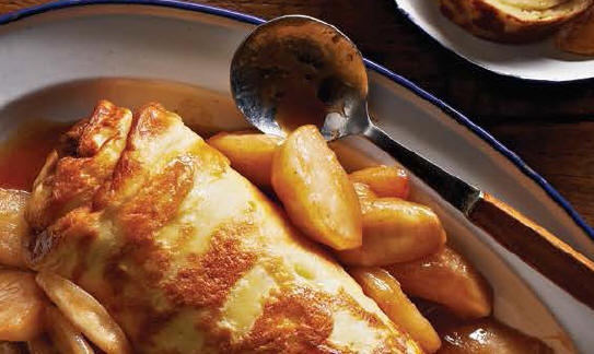tranches de pommes sautées, cannelle moulue, sucre et sirop d’érable.