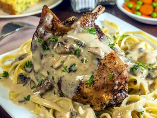 Découpez le lapin en morceaux et badigeonnez chacun de moutarde, faites-les sauter dans l'huile de façon à les faire dorer de tous les côtés.