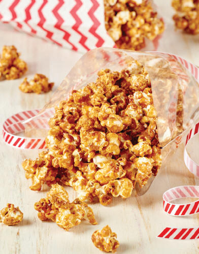 Verser le mélange de caramel chaud sur le maïs souffé.