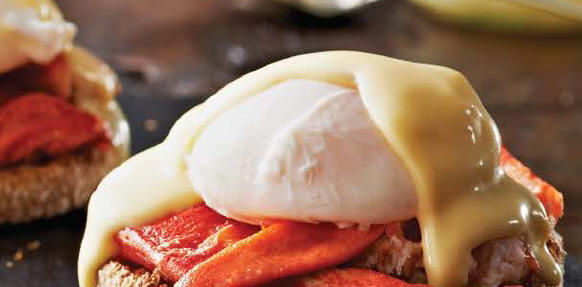 Verser environ 2 c. à table (25 ml) de sauce hollandaise sur chaque oeuf.
