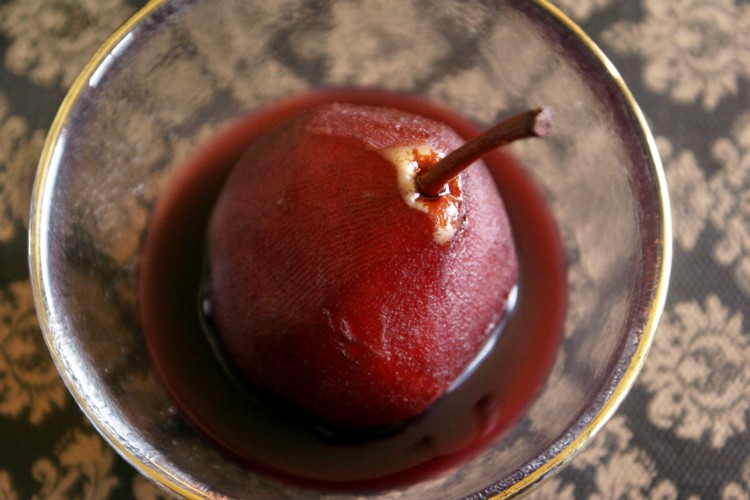 Une fois les poires cuites, faire réduire le jus pour en faire un caramel.