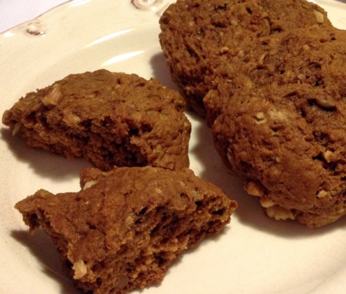 Ajouter les ingrédients secs et brasser dans la farine d'avoine puis ajouter les carottes, le zeste d'orange, les noix et les raisins.