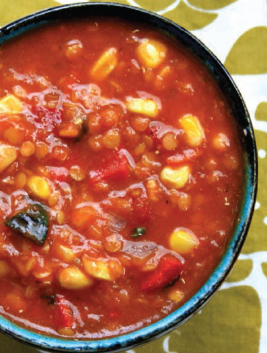Soupe aux poivrons rouges rôtis et aux lentilles