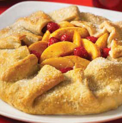 6. Au centre de la pâte, empiler les pommes et autres fruits dans un cercle de 9 po (23 cm).