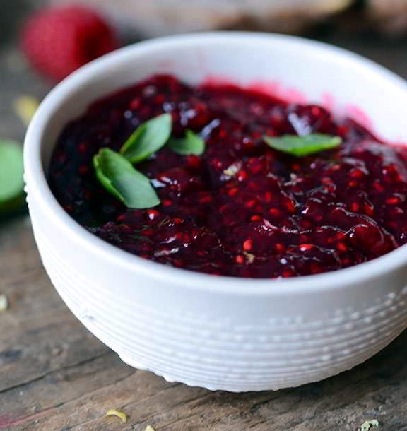 Confiture aux framboises et au basilic