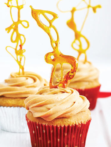 3. Verser le caramel sur la plaque préparée à l’aide d’une cuillère en faisant des formes simples.