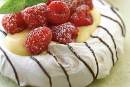 Remplir les meringues de sauce au citron et couvrir de fruits.
