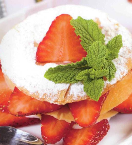 Monter les disques en millefeuilles en les intercalant avec le fromage frais et les tranches de fraise.