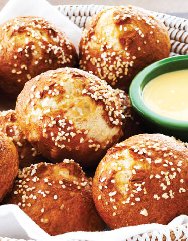 Pains bretzels avec trempette fromage et moutarde