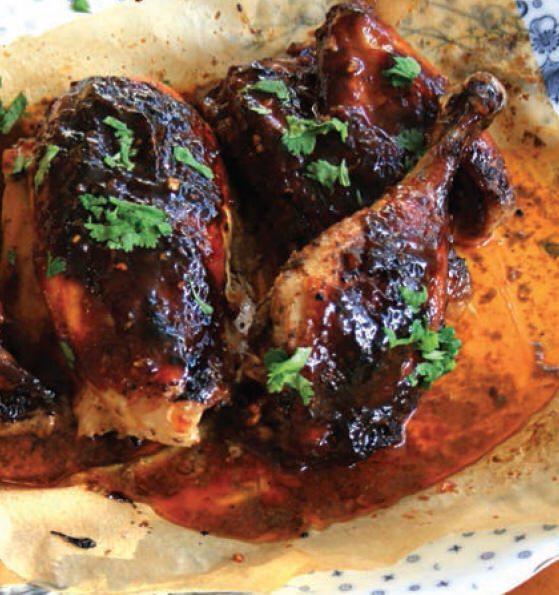 Réduire la température à 350 °F et cuire jusqu’à cuisson parfaite environ 45 min en arrosant souvent et en retournant, selon vos goûts.