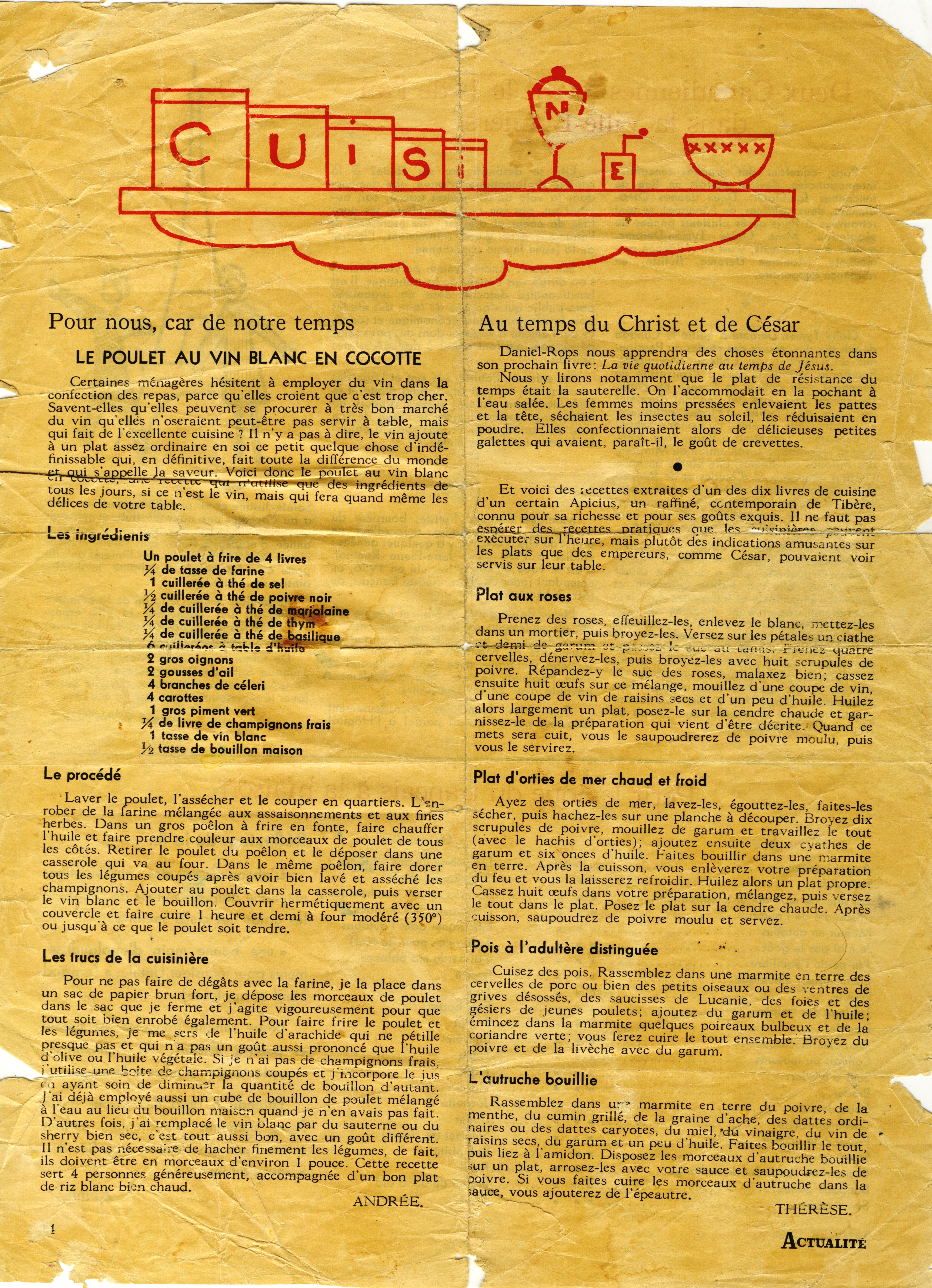 L’Actualité Cuisine, Janvier 1962 Page 01B