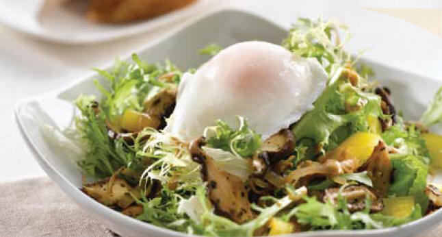 Salade de champignons sauvages et oeufs pochés