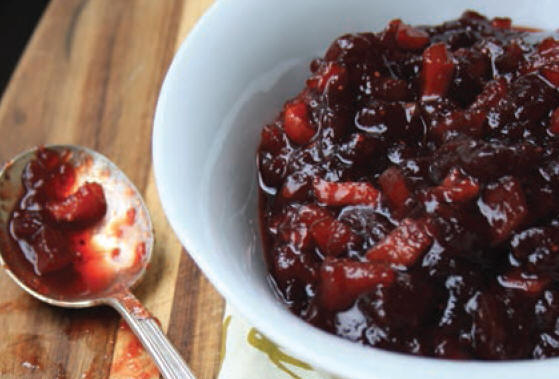 Dans une casserole moyenne, mélanger les canneberges, le sucre, la mélasse et les pommes.