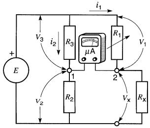 La résistance inconnue Rx est connectée dans une des branches du pont comme le montre la Fig. 6-12.